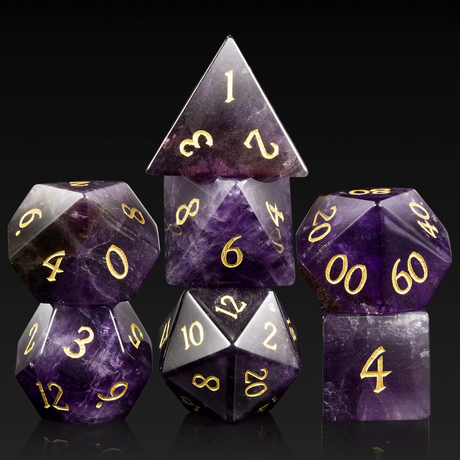 View compareD&D Cracked Frosted Glass Dice 7 Piece Purple Zircon Dice with Great Gift Case for DND Dungeons and Dragon Tabletop Game (Purple