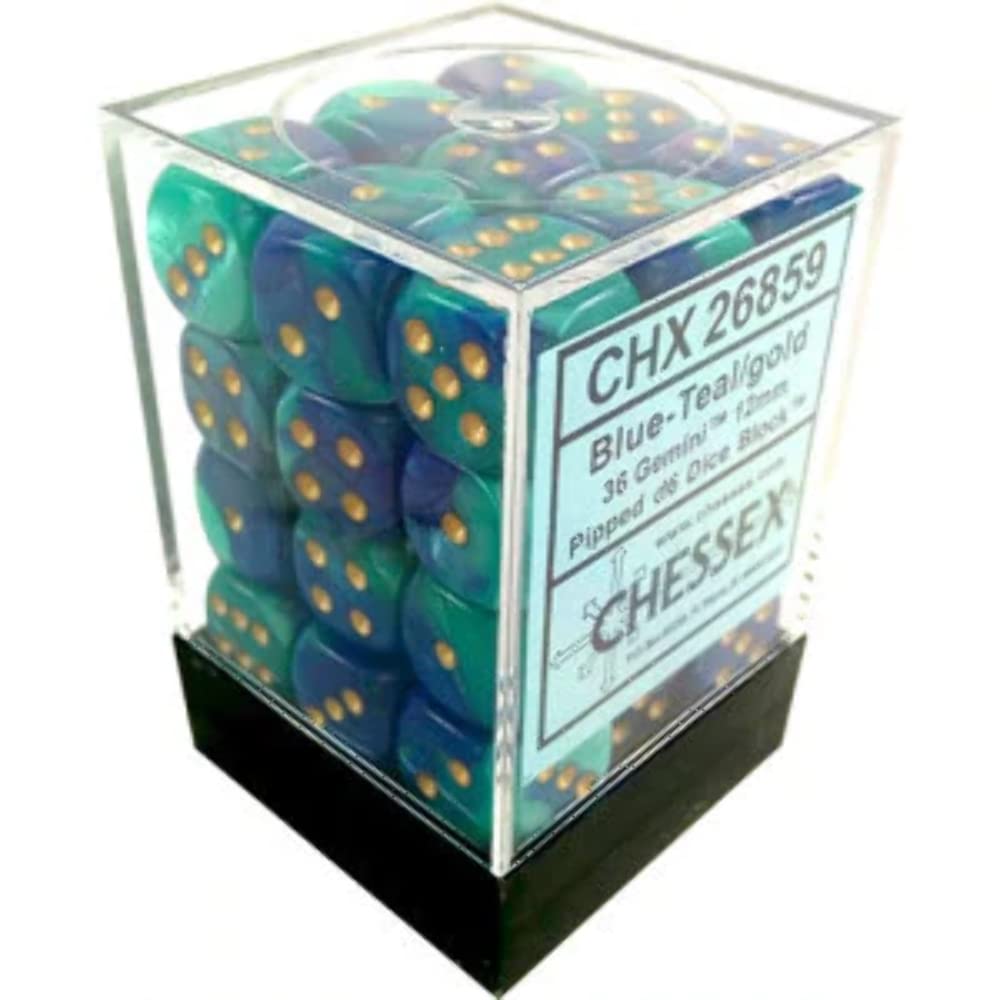 d6 Cube12mm Gemini #7: Blue Teal with Gold (36)