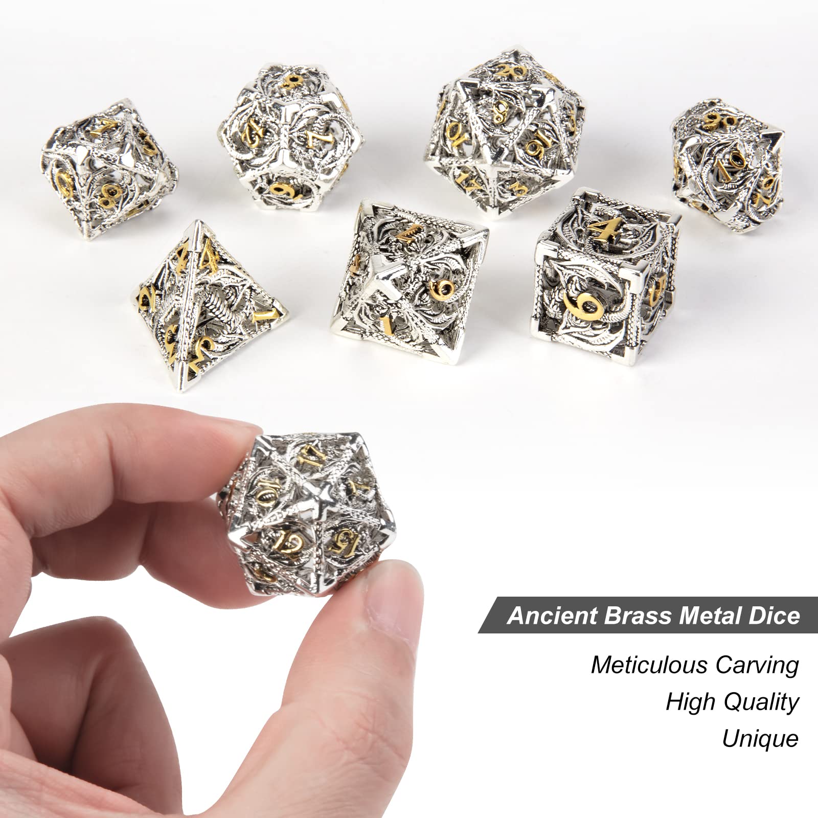 DND Dice,Hollow D&D Metal Dice,Dungeons and Dragons Dice Set with Gift Box,7 PCs Steampunk Polyhedral Dice Games Set for RPG,MTG