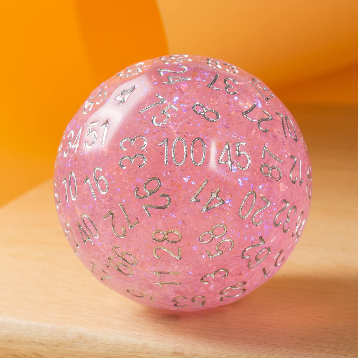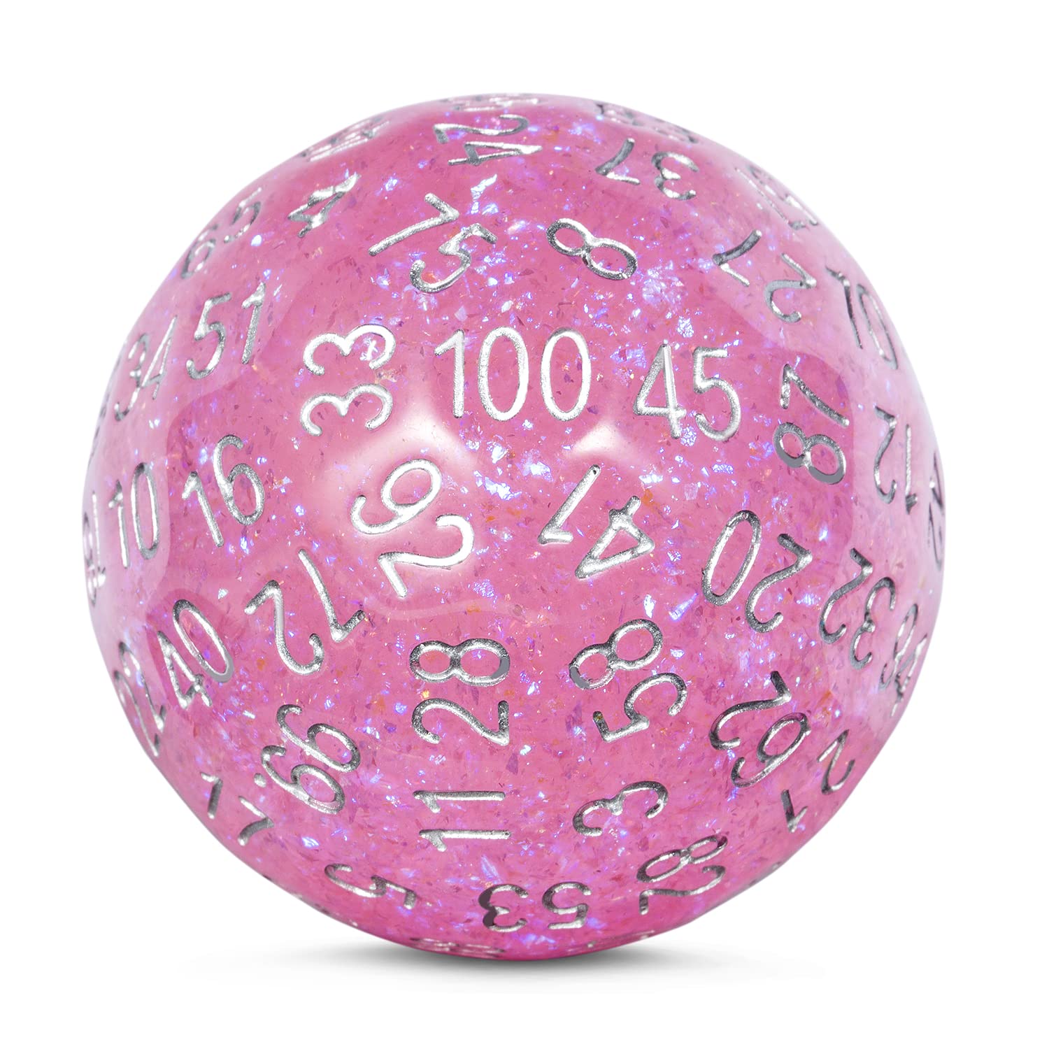 DNDND D100 Pink Chameleon Powder Die with Translucent Pouch for D&D - Perfect for Dungeon and Dragons Gameplay