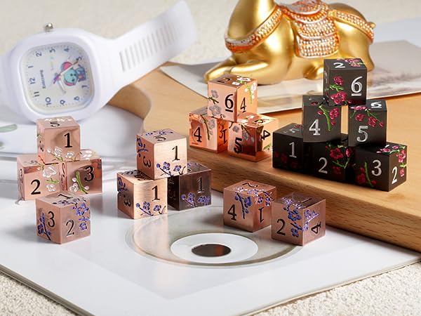 - Q: What material are the DNDND Flowers D6 Dice made from? A: These dice are made from high-quality zinc alloy, providing a solid feel and durability during gameplay.