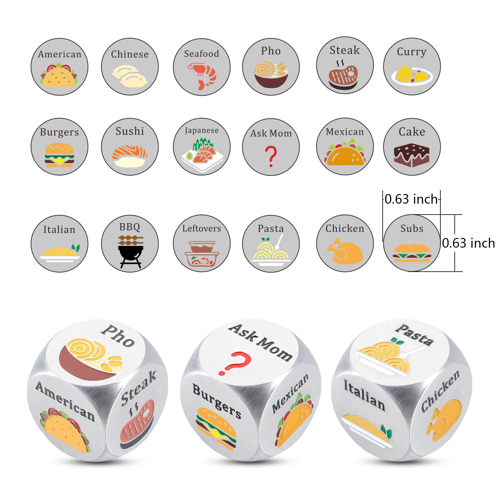 - Q: What are food decision dice and how do they work? A: Food decision dice are fun, interactive tools designed to help couples or friends decide what to eat. Each side of the dice features different meal options, and by rolling the dice, you can quickly choose your next meal without the stress of decision-making.