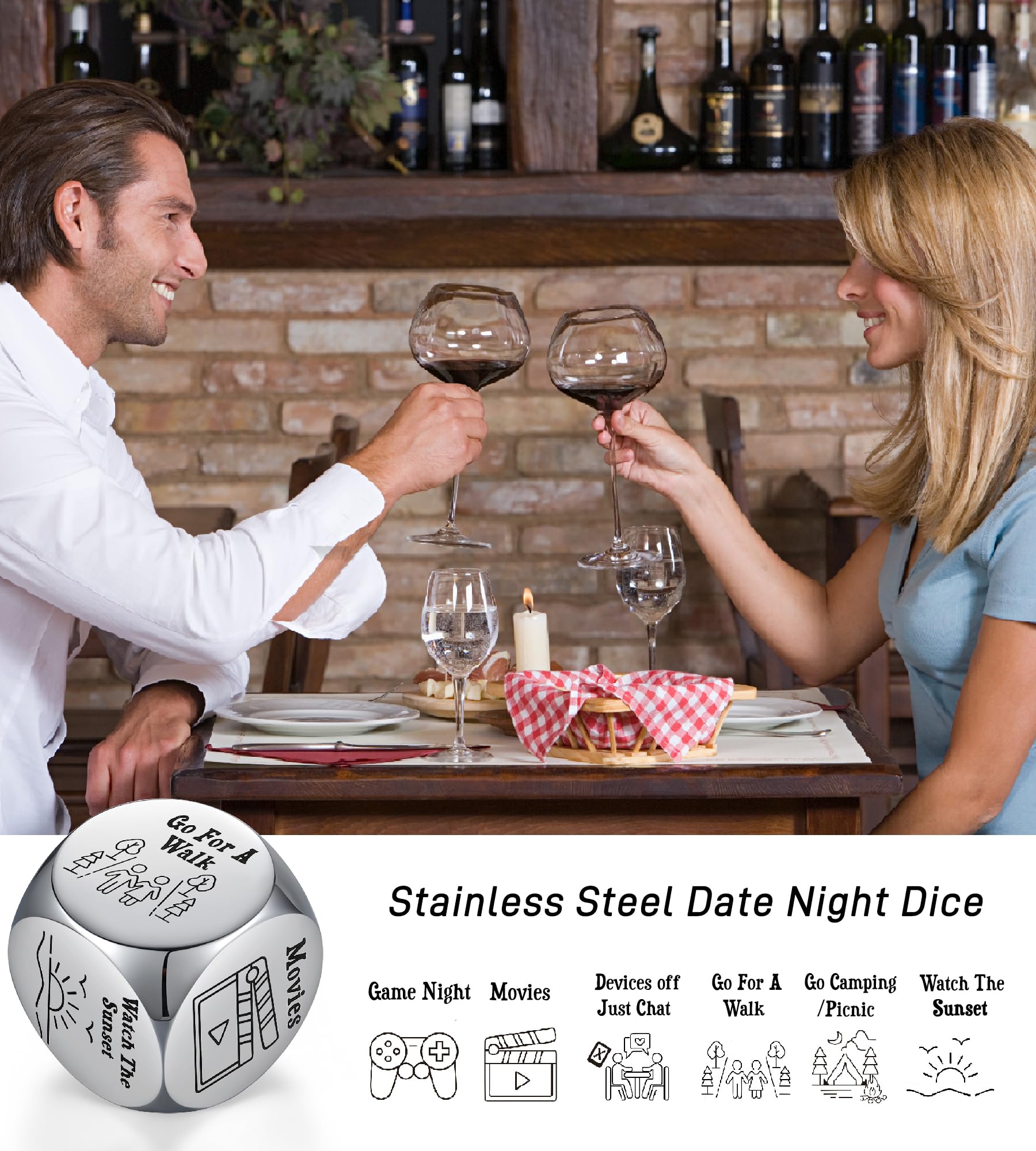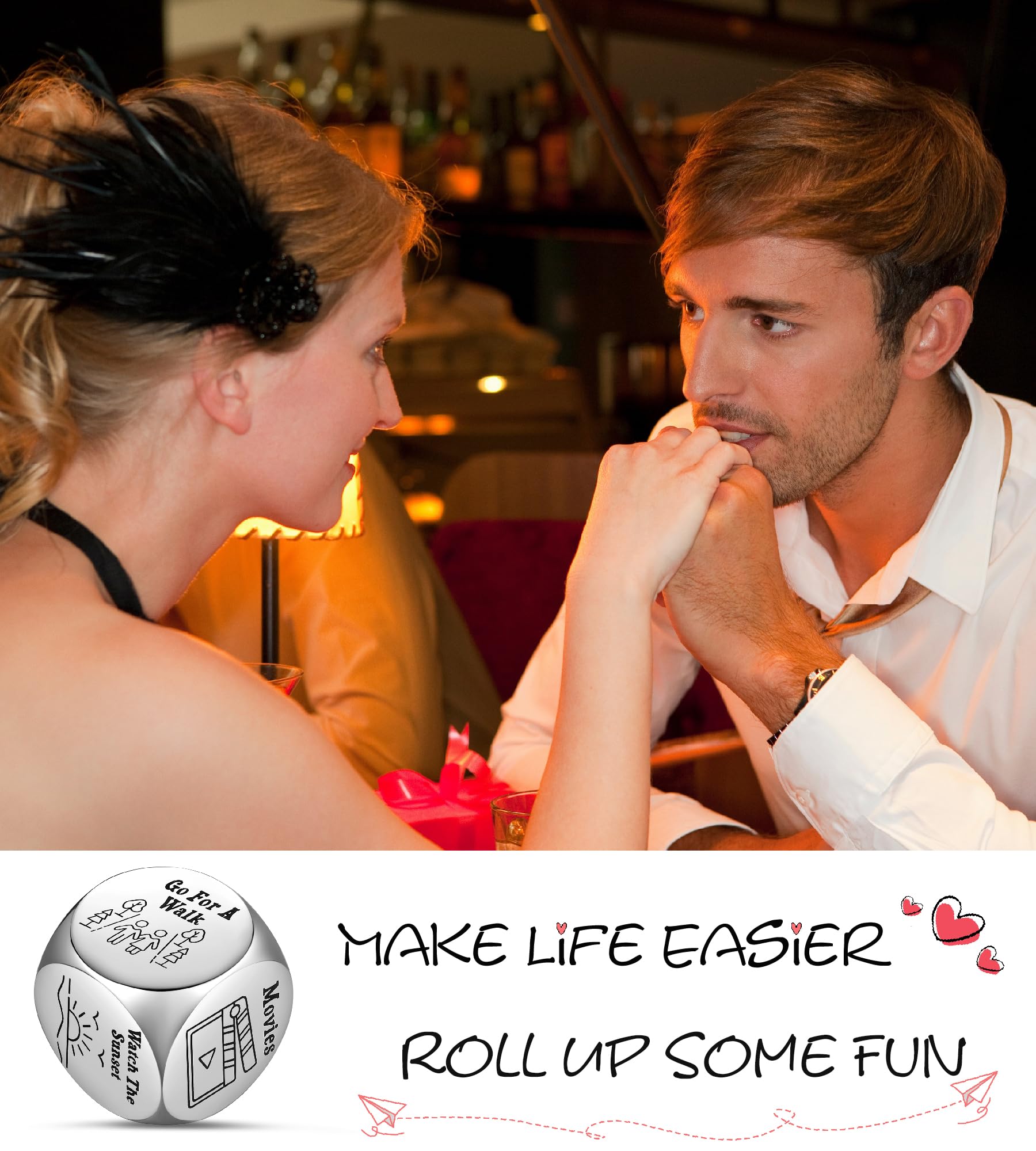 - Q: How can the date night dice enhance my romantic evenings? A: The date night dice provides unique and fun ideas for couples looking to spice up their evenings. Simply roll the dice to decide on activities, making it a playful way to explore new experiences together.