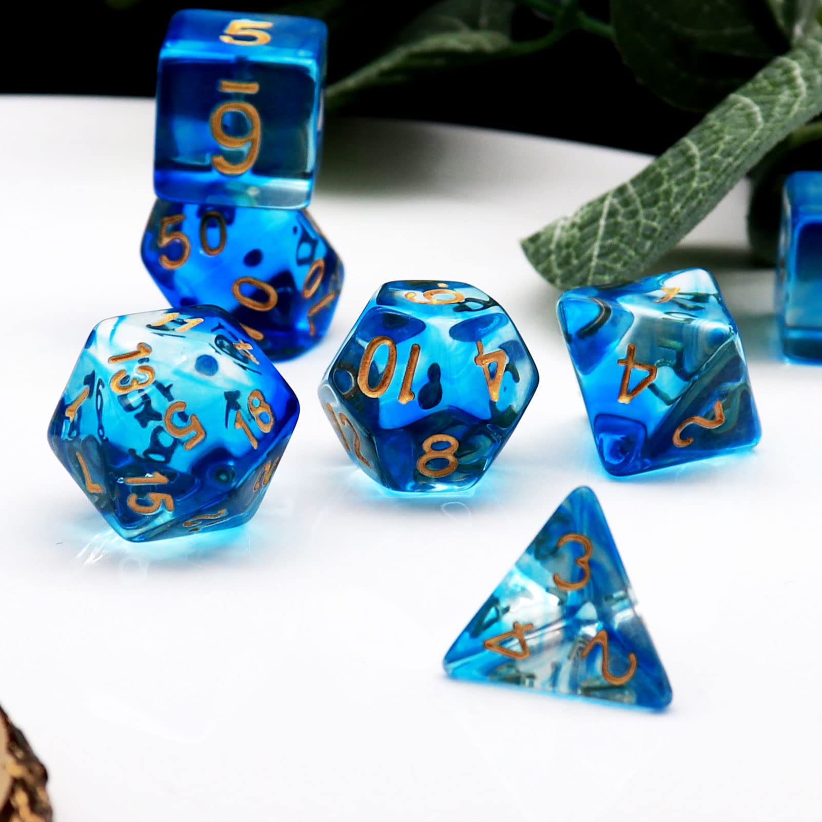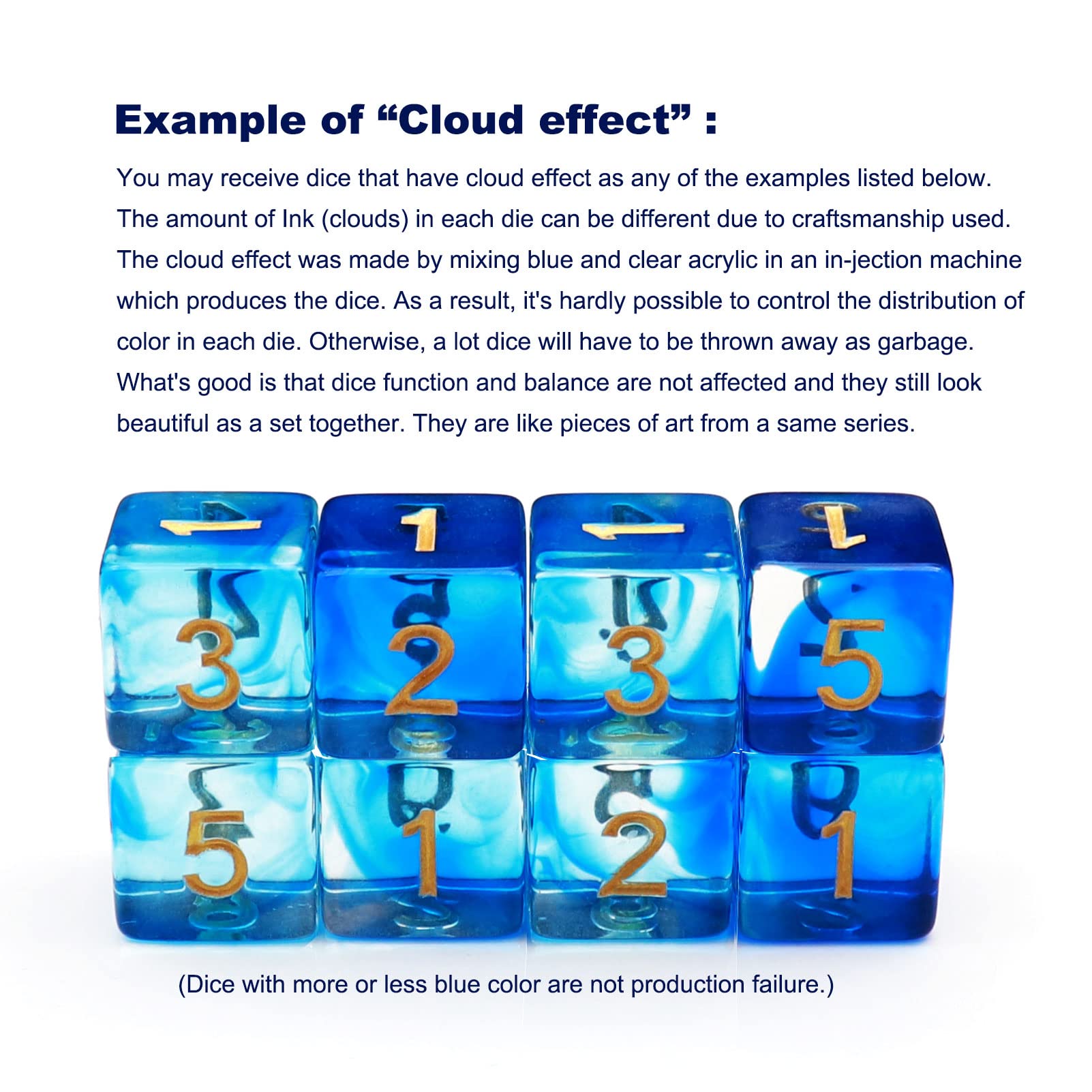 Haxtec 11 Piece Dice Set Extra D6 D20 Compatible with Dungeons and Dragons 5e RPG Games-Blue Cloud
