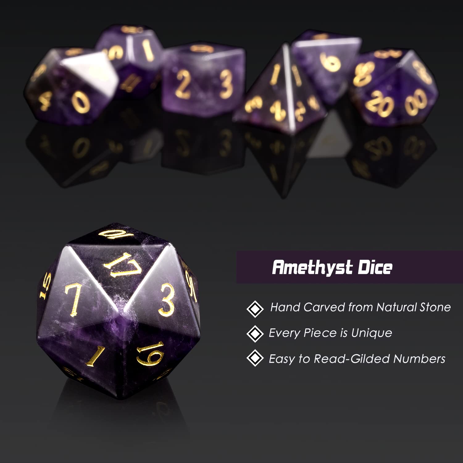 Product Description DNDND Gemstone Dice Set of 7 Pieces with metal case. Includes D4, D6, D8, D10, D12, D20 and D%. The dice are perfect for RPGs such as Dungeons and Dragons, Shadowrun, Pathfinder, Savage World, Warhammer, Yahtzee, and many other RPG. Specification Material:Gemstone Size: 16mm Color:Hematite Net Weight:2.54Oz Package Include: 1* Hematite DND Dice Set 1* Metal Tin Dice Warranty If you receive defective dies or missing dies set, please contact us for replacement. Warm Notice Small parts, please keep them away from children.