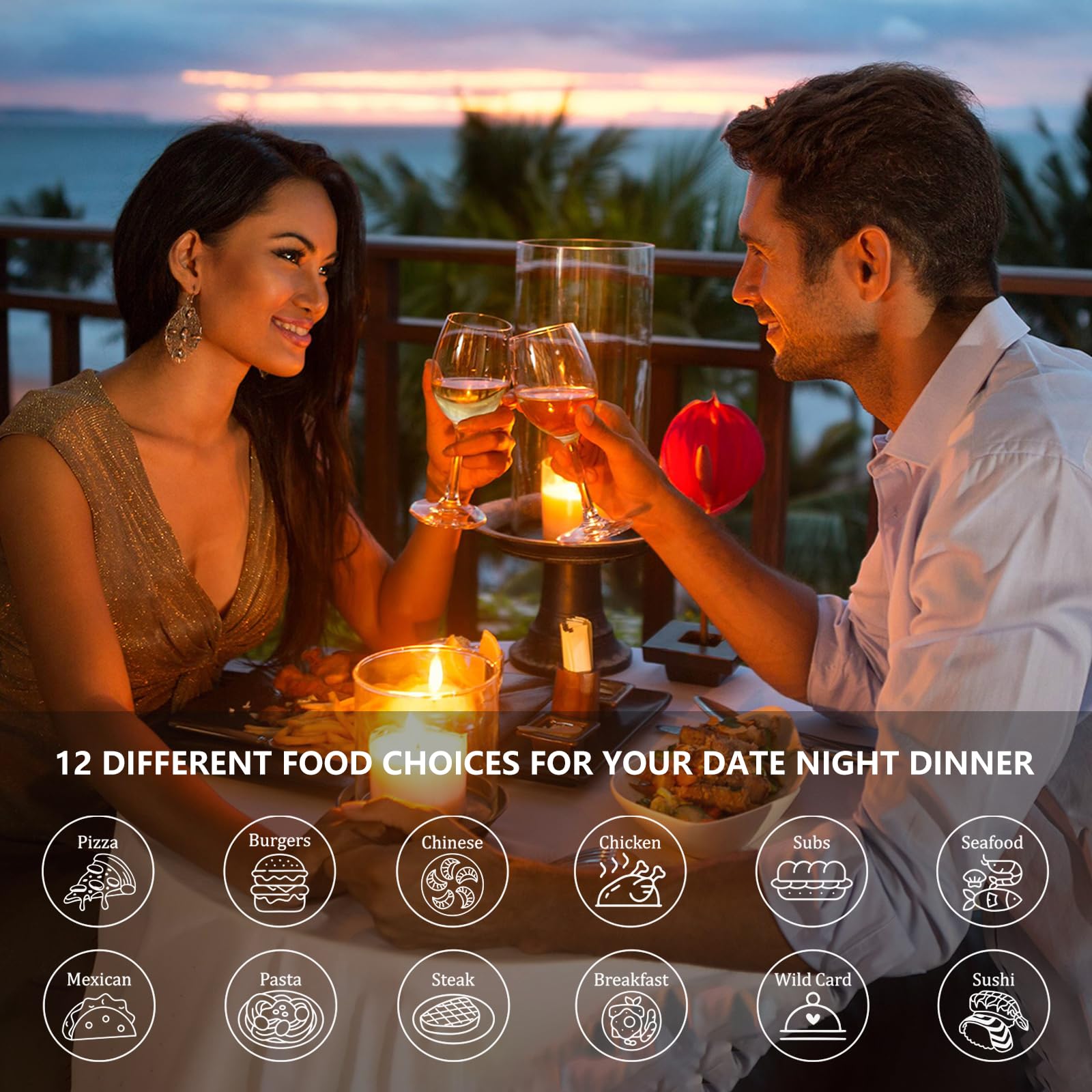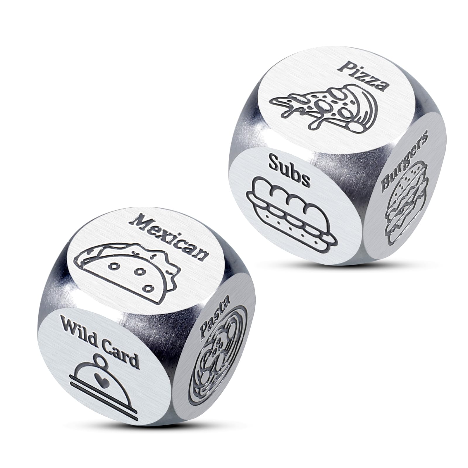 - Q: What are food decision dice and how do they work? A: Food decision dice are a fun and interactive way to decide what to eat for date night. Each die features various food options such as pizza, burgers, and sushi. Couples simply roll the dice, and the outcome helps them choose a meal, eliminating indecision and adding an element of surprise to their dining experience.