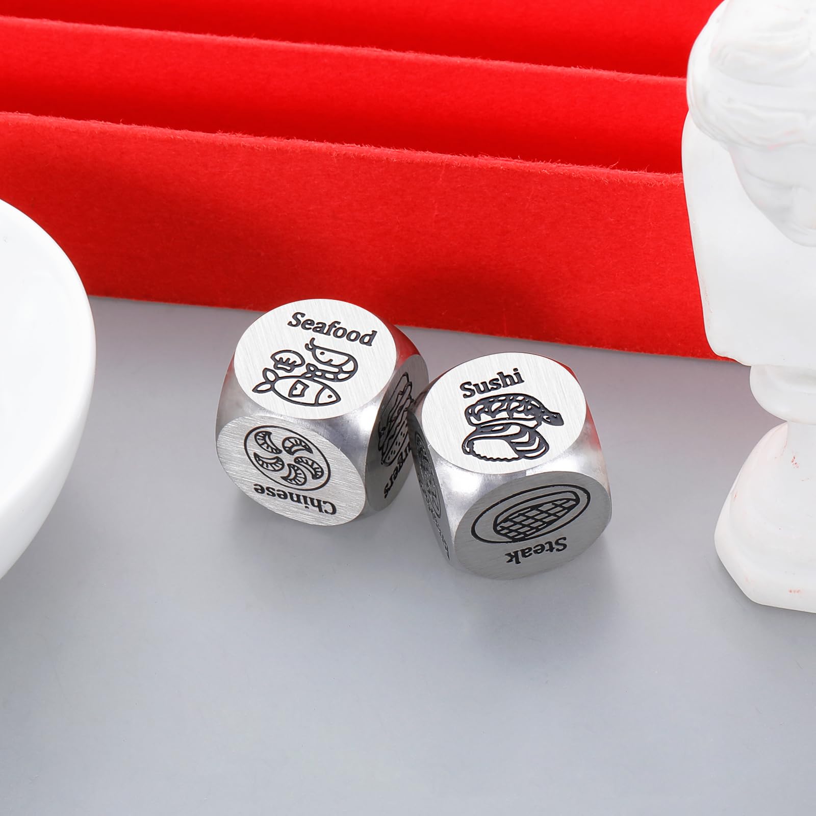 Date Night Gifts for Couples: Many people most of the time cant decide where they want to go to eat. The dice has fixed that problem, which make it a date night gift for your lover, boyfriend, girlfriend, husband, wife, bride, groom, soulmate, friends, family, coworker, hubby, wifey. Roll this food decision dice and let it solve your troubles! Cute anniversary gift idea for him, her, wife, husband. Perfect for dating, dinner, takeout food decision.Anniversary gifts for him her: Funny gift for man woman in Valentine's Day, anniversary gifts for couples, husband or wife, wedding gift for couple, engagement wedding gift for bride and groom, great boyfriend Husband Christmas gifts. Valentine's Day Gifts for Boyfriend Girlfriend: Couples simply roll the dinner dice and let fate decide what to eat for date night. It's a fun and lighthearted way to add some spontaneity to your relationship. Makes an excellent gift for anniversaries such as the 6-month anniversary gift, 1-year anniversary gift, 10th anniversary gift, 11th anniversary steel gift, 10th anniversary gift and more. Date Night Ideas: The couple date night ideas decider dice are fun and practical gifts that any couple would enjoy. It's well-made, and adds a touch of playfulness to any relationship. If you're looking for a unique and memorable gift for your significant other, these dice are definitely worth considering.