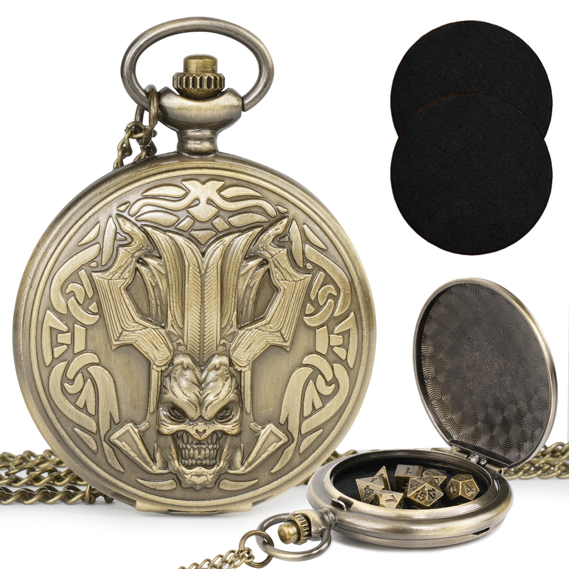 - Q: What materials are used in the Kabinka DND Dice Set? A: The Kabinka DND Dice Set is made from premium zinc alloy, ensuring durability and a high-quality finish. The pocket watch case is constructed from a durable metal alloy as well.