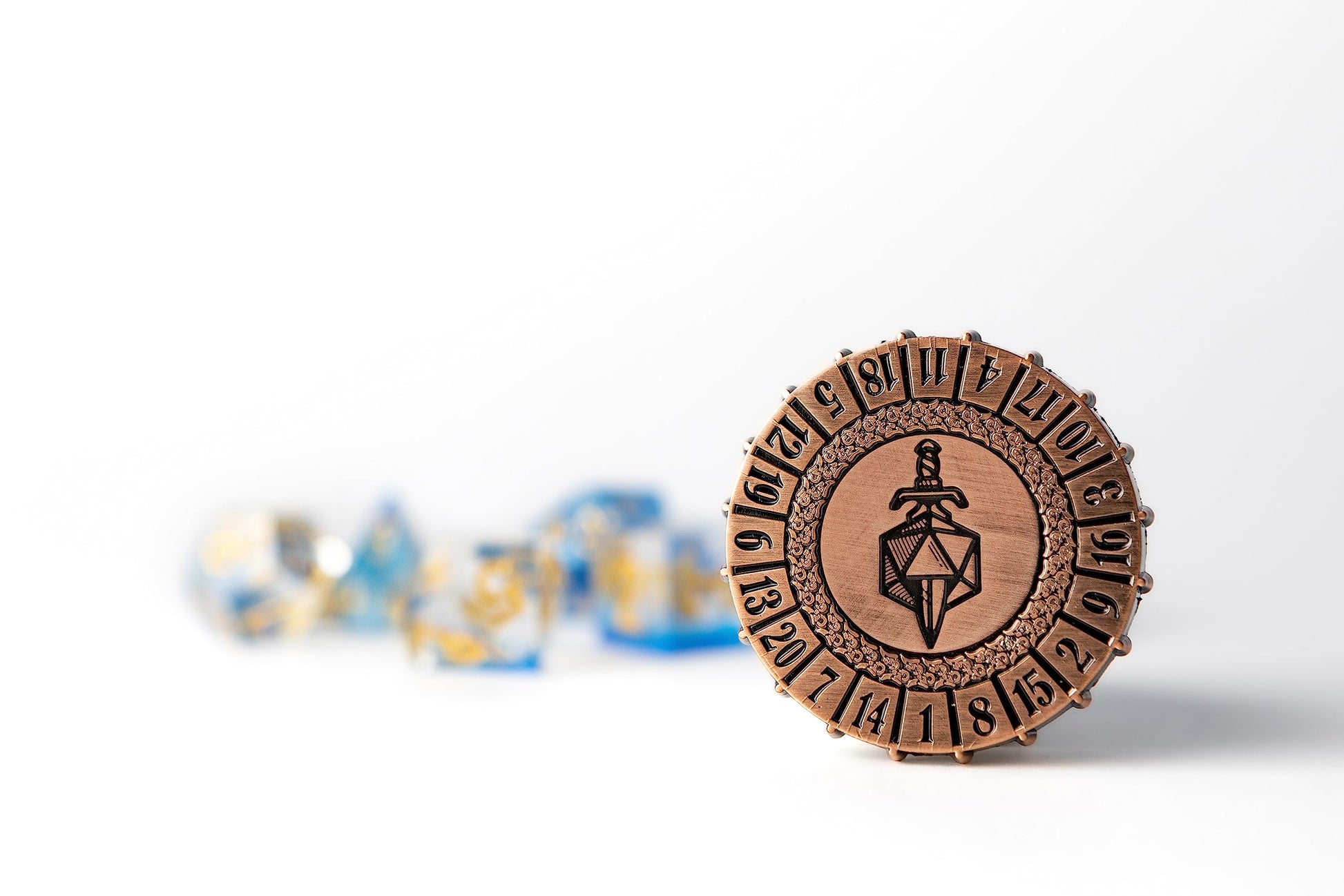 Metallic Dice Games Fanroll Metal d20 Spinner: Antique Copper