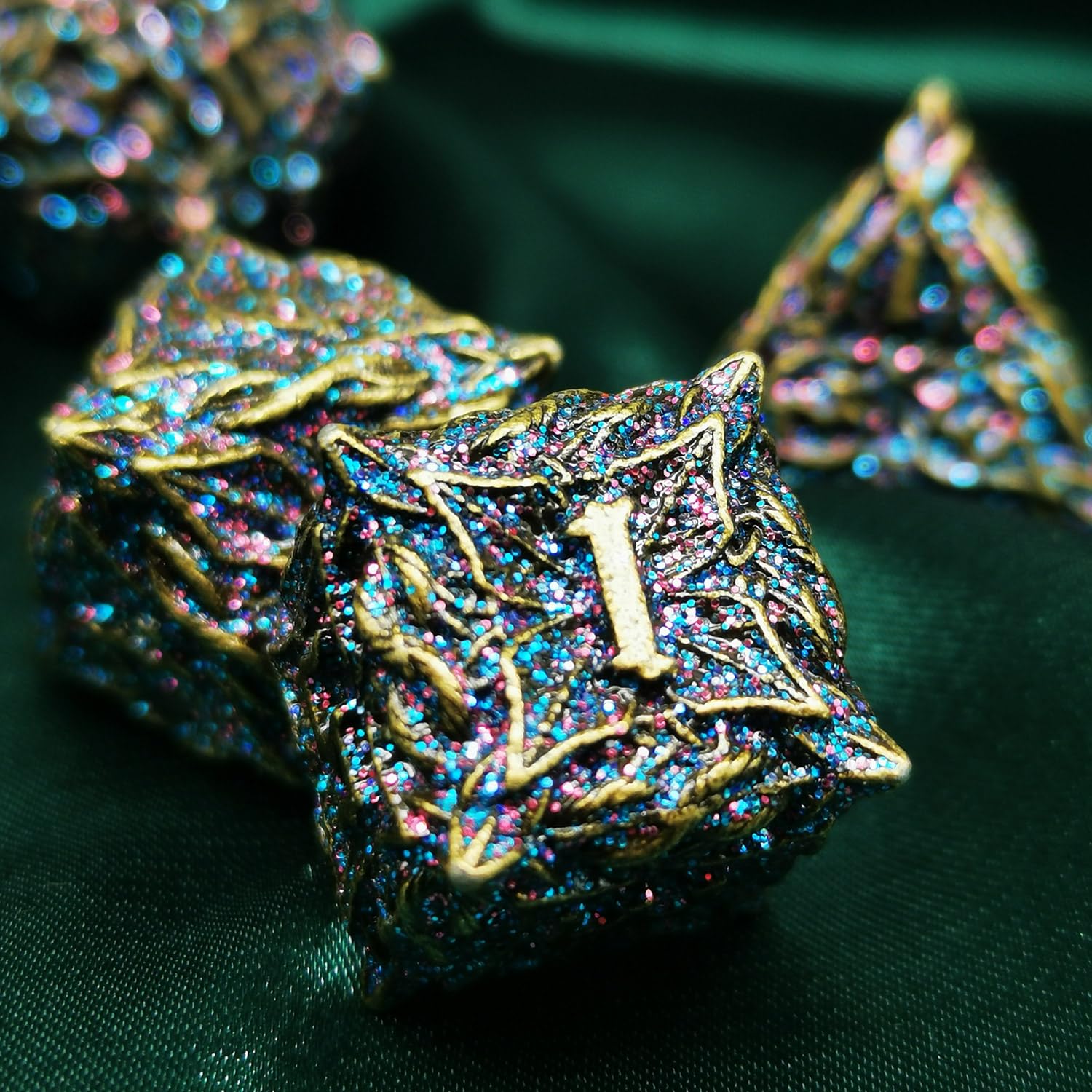 Mjdiceok Metal Flash Magic Vine Leaf Dice Set Dnd 7 Pcs Polyhedral D&D Dice Set Apply To Dunfgeons And Dragons Gift Role Playing