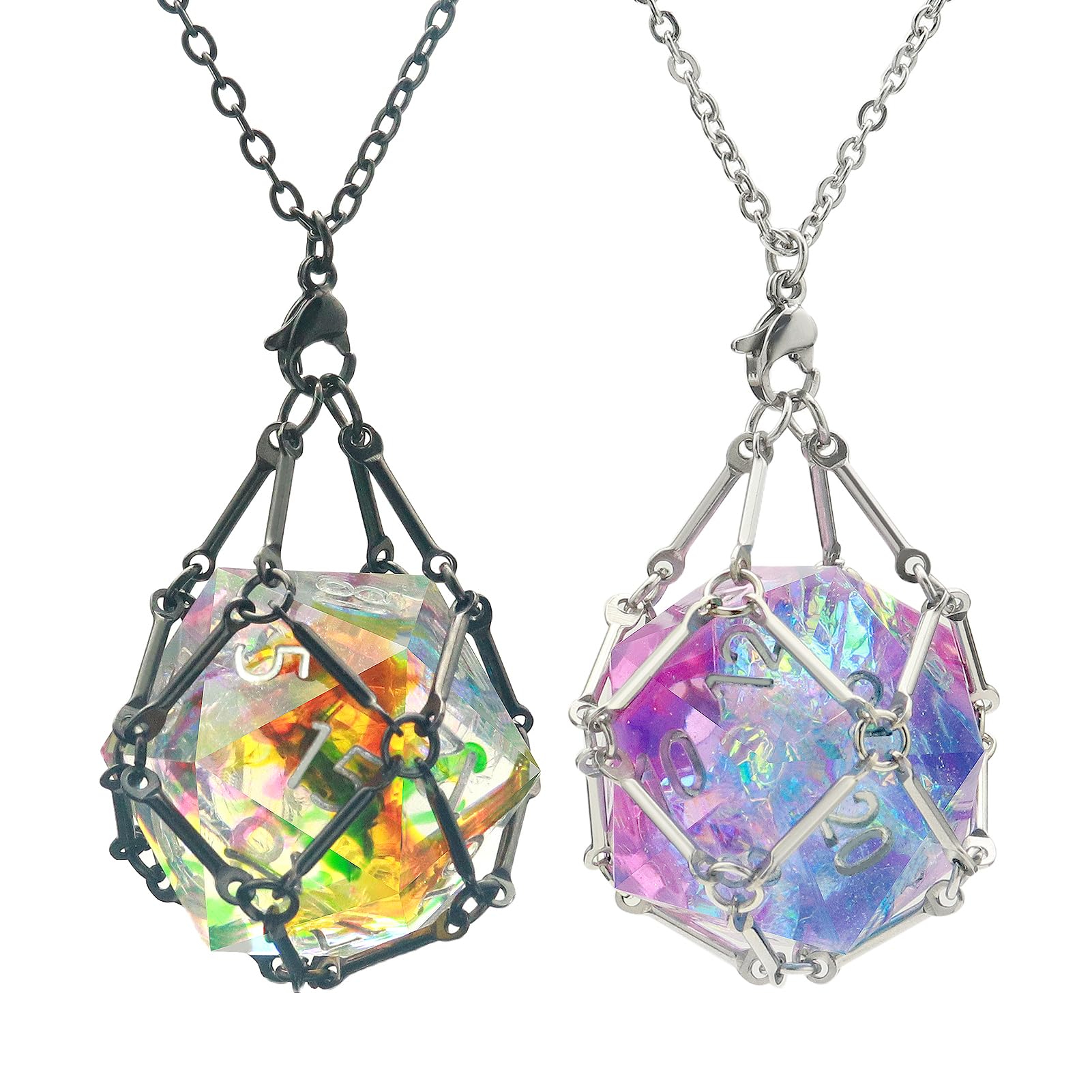 Cool dnd dice cage necklace that can hold standard and bigger dice. Quality stainless steel material. Secure lobster clasp lock. No missing dice. Fashional novelty pendant necklace for lovers and dnd gamers.