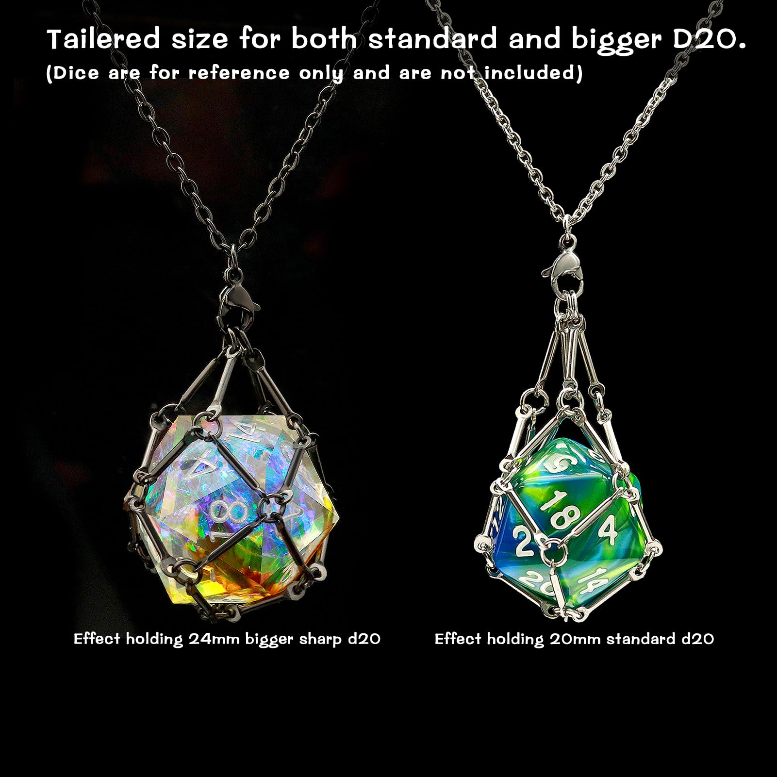 - Q: What types of dice can the PJOY DND Dice Necklace hold? A: The PJOY DND Dice Necklace is designed to hold both standard and larger D20 dice securely within its cage.