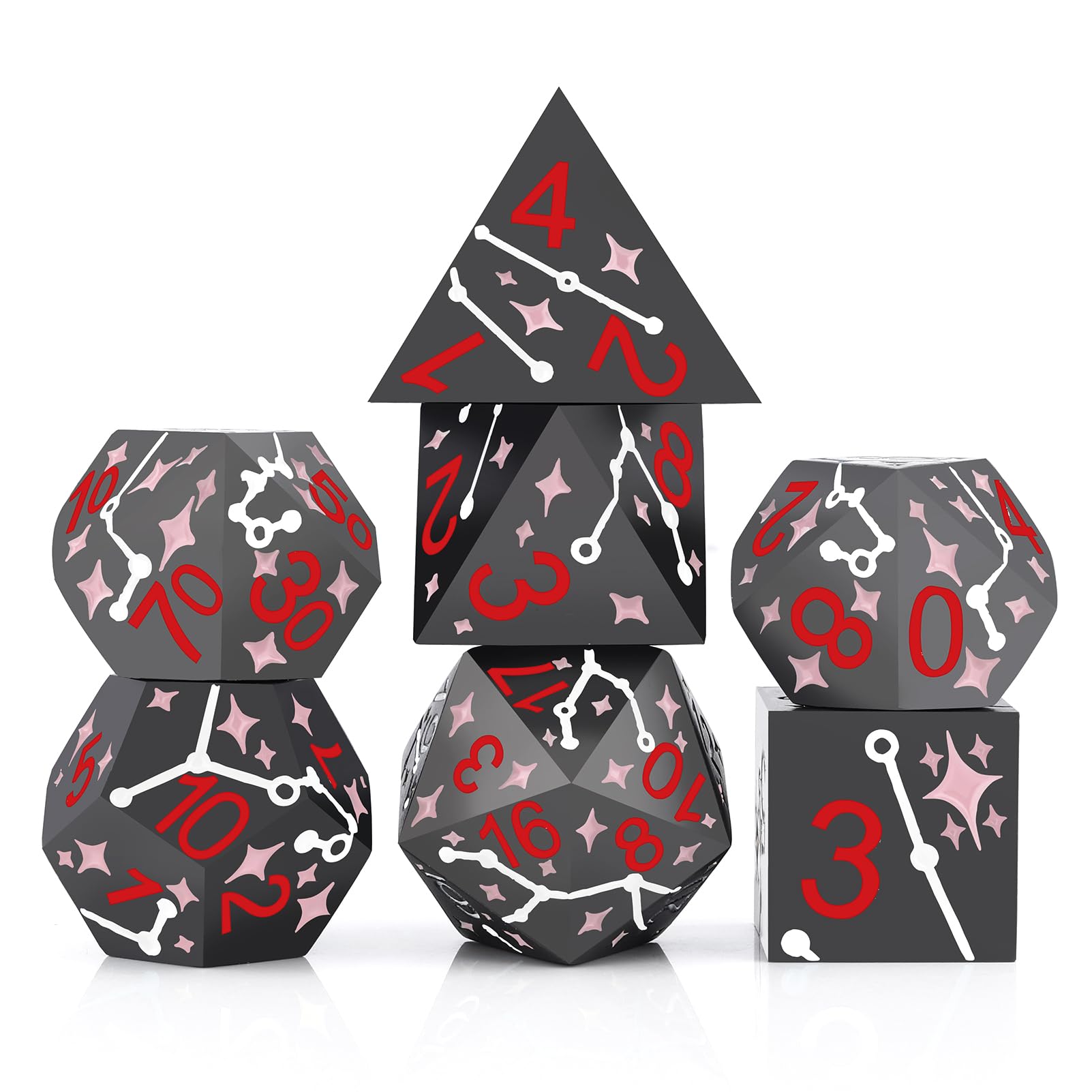 View comparePJOY Metal Dice Set D&D Star Dice Set DND Polyhedral Dice for RPG Role Playing Games Dungeons and Dragons TTRPG Black Red Pink D