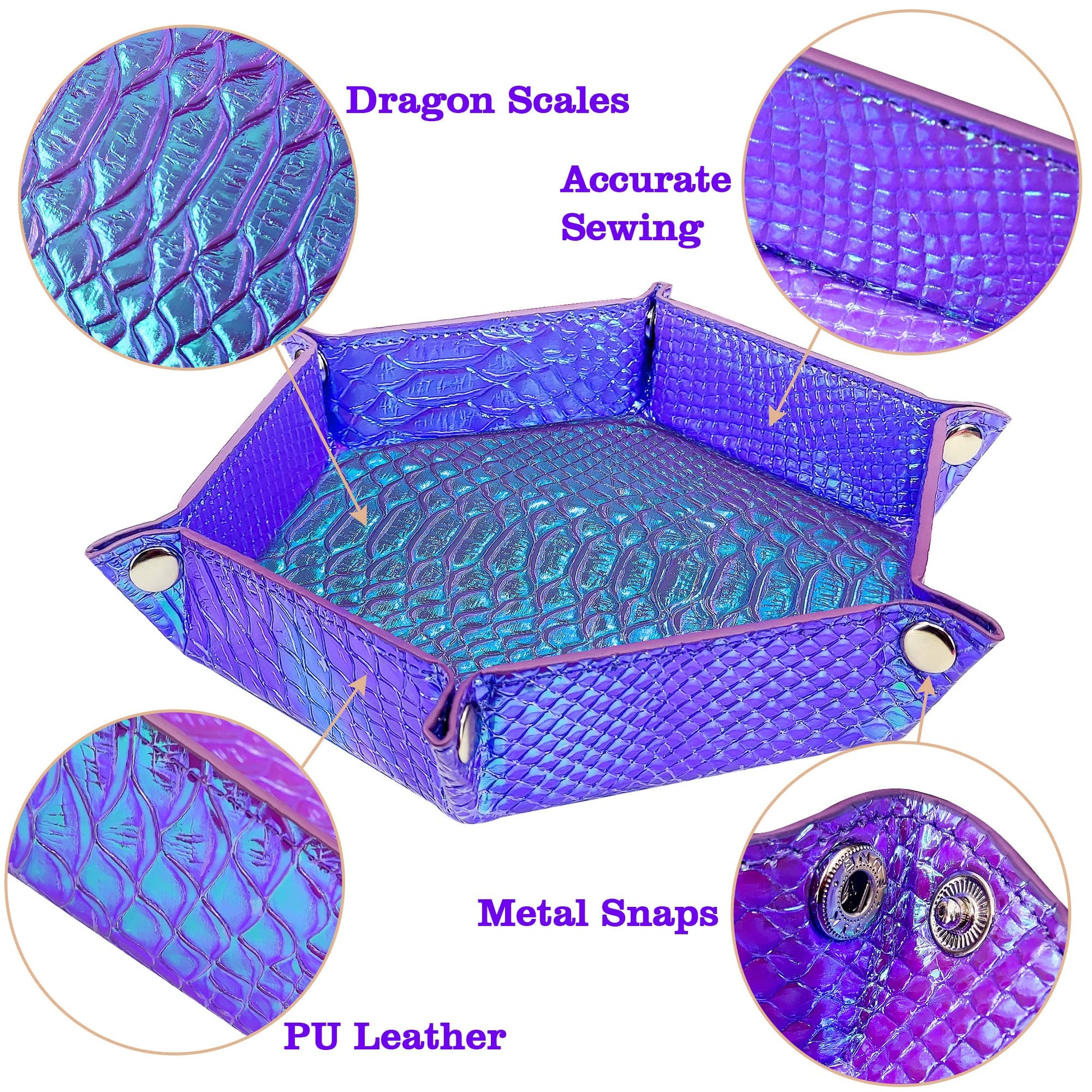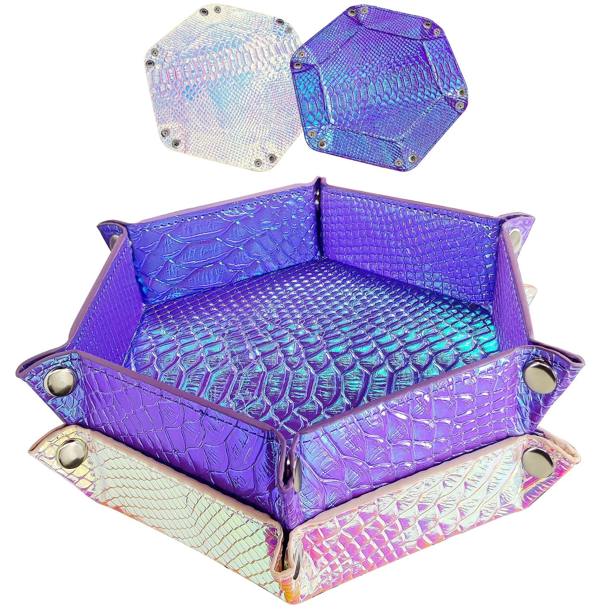 SIQUK 2 Pieces Mermaid Dice Tray PU Leather Dice Trays Portable Folding Hexagon Dice Roller Tray for Dice Games Like RPG, DND and Other Table Games (Violet, Light Violet)