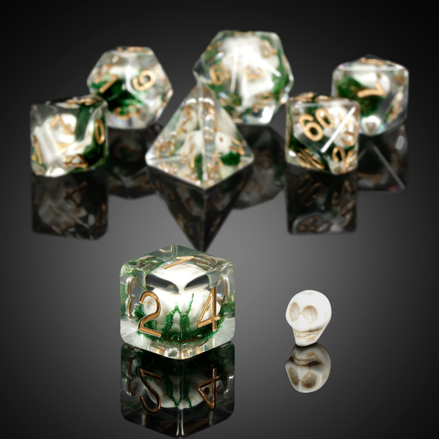 Skull DND Dice, DNDND 7PCS Resin Dice Set with Velvet Pouch for Dungeons and Dragons D&D Role Playing Games and Tabletop Games (