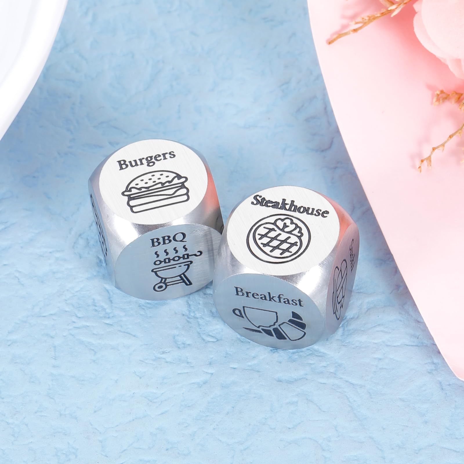 - Q: Can the food decision dice be used for different types of meals? A: Yes, the food decision dice are designed to help decide various meal options. Each side of the dice features a different food choice, allowing couples to roll the dice and let fate decide what to eat, making it a fun addition to any date night.