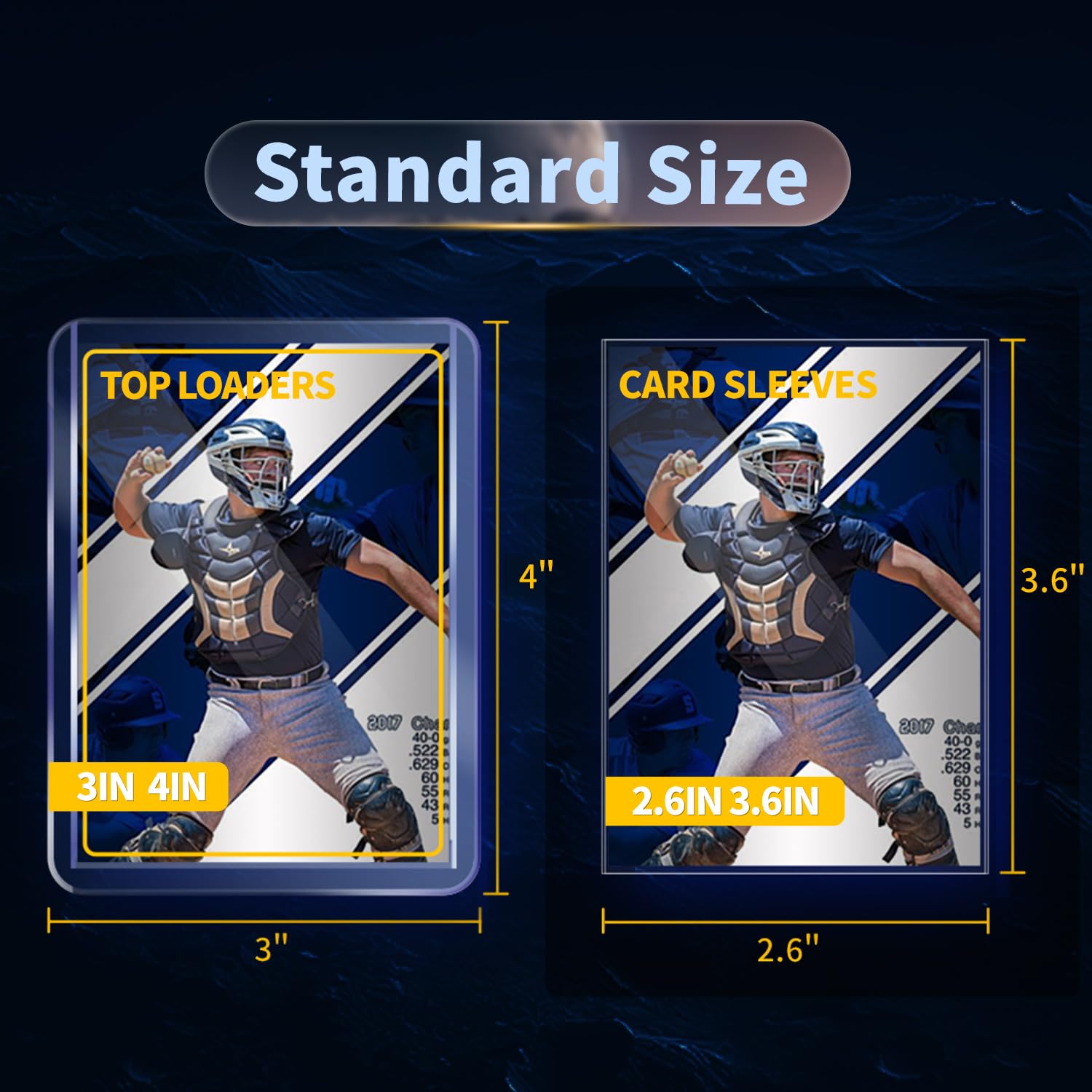 200 Card Sleeves Top Loaders for Cards Toploaders enhanced Baseball Card Sleeve Hard Plastic 3 x 4 Trading Cards Holder Sports Protectors(100 Toploaders + 100 Penny Sleeves)