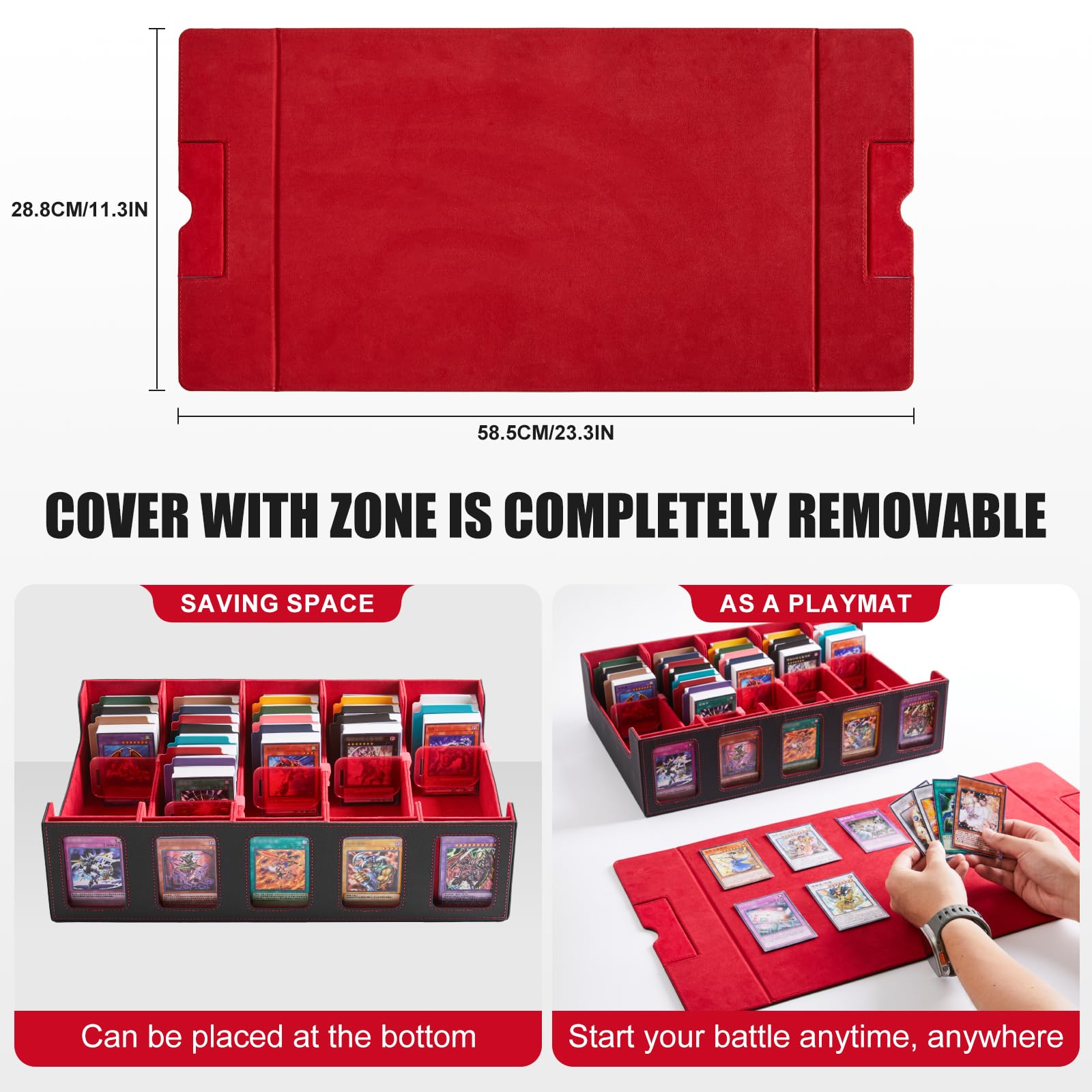 5-Row Trading Card Storage Box Protable 3900+ MTG Deck Box with Removable Lid Leather Magnetic Closure Commander Deck Box with 5 Toploaders 5 Stoppers 48 Dividers 1 Dice Tray (Black & Red)