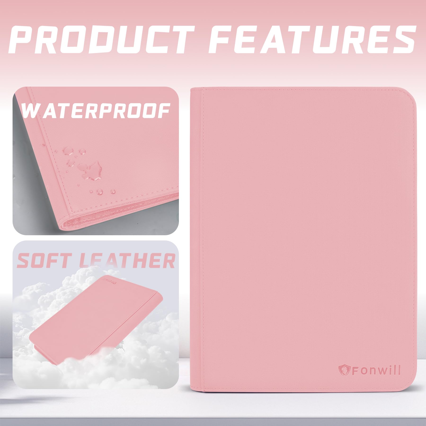 9 Pocket Card Binder enhanced Zip Trading Card Binder 360 Double Sided Pocket PU Collection Binder Collector Album Card Folder for MTG TCG Sports Cards (Pink)