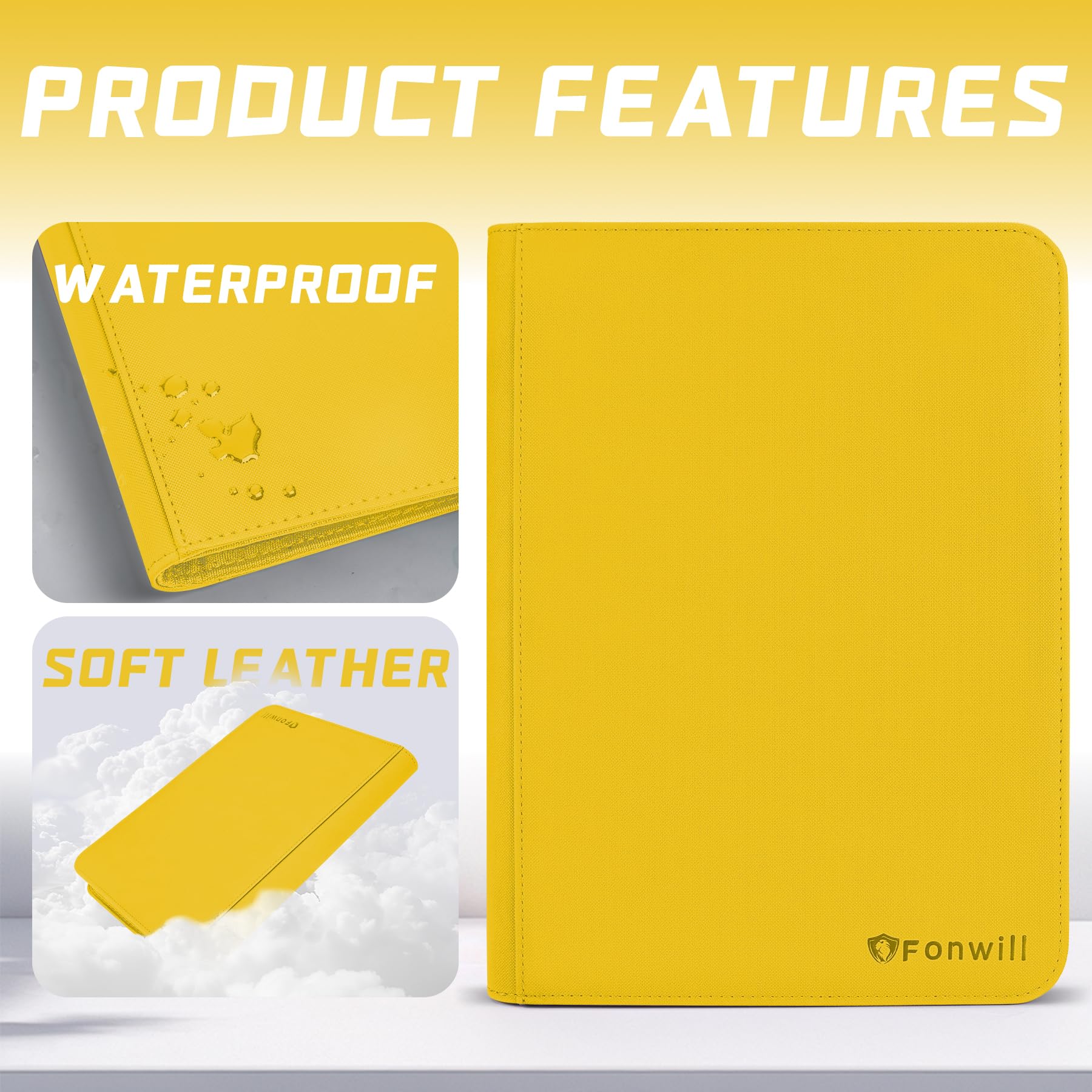 9 Pocket Card Binder enhanced Zip Trading Card Binder 360 Double Sided Pocket PU Collection Binder Collector Album Card Folder for MTG TCG Sports Cards (Yellow)