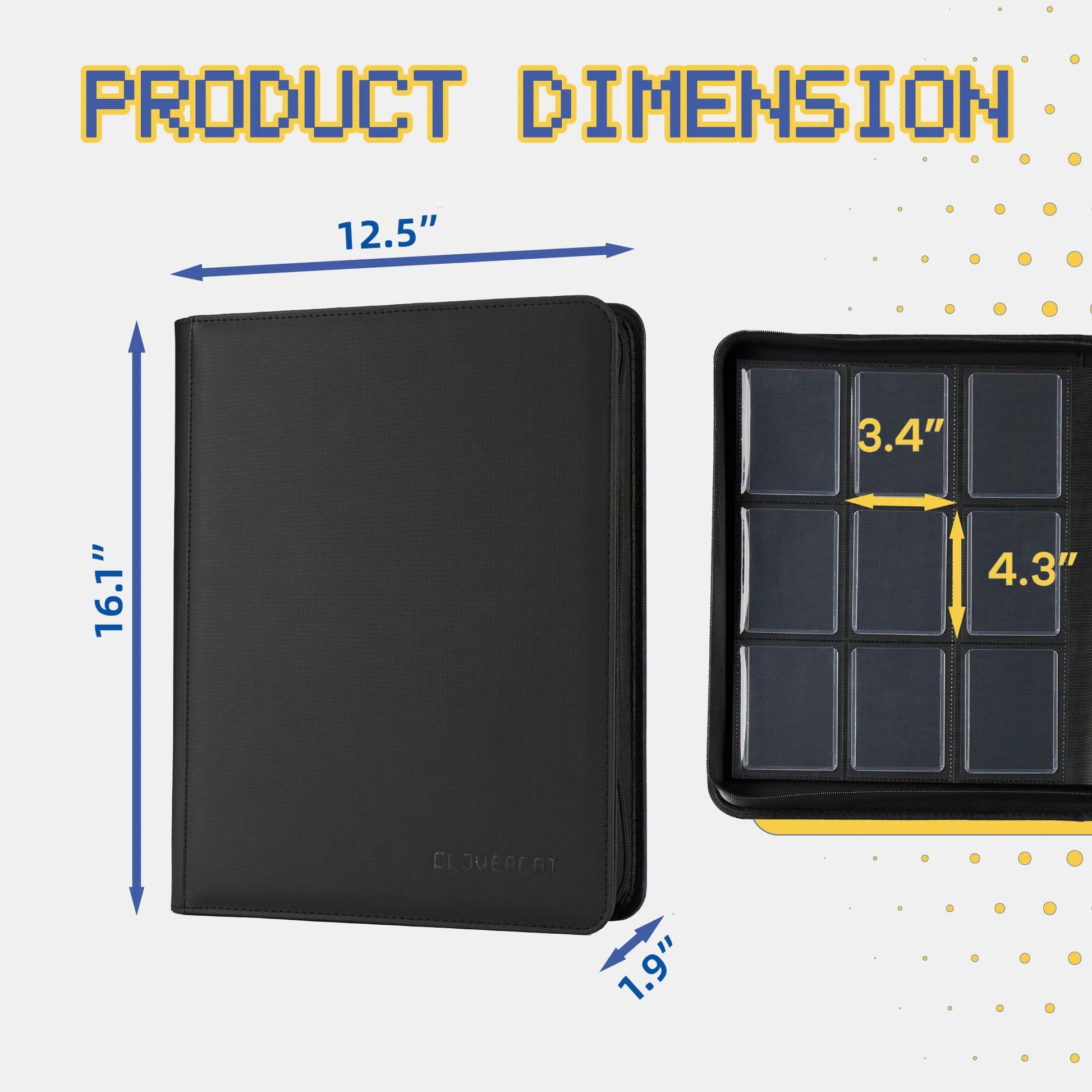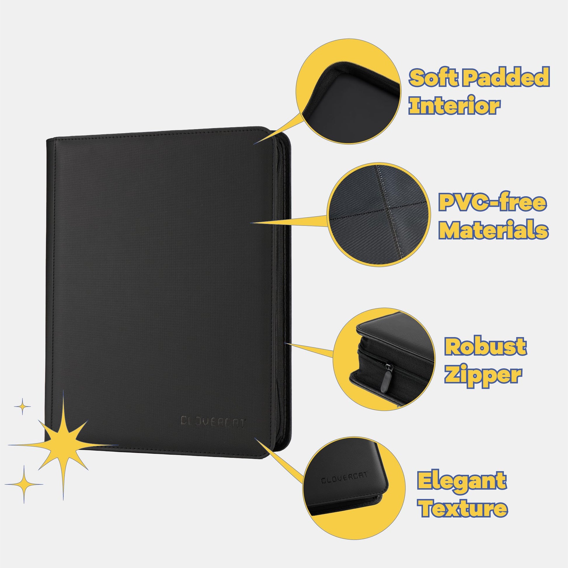 CloverCat enhanced 9-Pocket Top-loader Card Binder - Ultimate Storage Solution for Trading Card Enthusiasts (Black) Protect organize and showcase your prized card collection with the CloverCat 9-Pocket Toploader Card Holder-a must-have for collectors and players of Yu-Gi-Oh! Magic: The Gathering (MTG) TCG and other trading card games. Designed for durability and convenience this enhanced binder combines sleek aesthetics with practical functionality to keep your cards se accessible and in mint condition. Why Choose CloverCats Card Binder? ? 9 enhanced Top-loader Pockets: Safeguard up to 252 cards with reinforced crystal-clear pockets designed to fit standard-sized gaming cards (2.5 x 3.5). Each pocket securely holds cards in toploader sleeves (not included) for added protection against bends scratches or dust. ? 20 Removable Storage Toploader Sleeves Included: Store spare cards tokens or accessories in the included sleeves which can be easily rearranged or removed to customize your binder layout. ? Durable & Portable Design: Built with a rugged scratch-resistant hardcover exterior and a sezippered closure this binder ensures your collection stays safe during travel tournaments or everyday use. The compact lightweight casebook fits effortlessly into backpacks or gaming bags. ? Effortless Organization: Arrange cards by rarity deck type or game set with intuitive side-loading pockets. The black professional finish adds a touch of sophistication making it ideal for trades displays or competitive play. ? Universal Compatibility: Perfectly sized for all popular TCGs including Yu-Gi-Oh! MTG and sports cards. Ideal For: - Competitive players needing quick access to decks during matches - Collectors preserving rare or graded cards - Gift-seekers looking for a stylish functional present for gaming enthusiasts