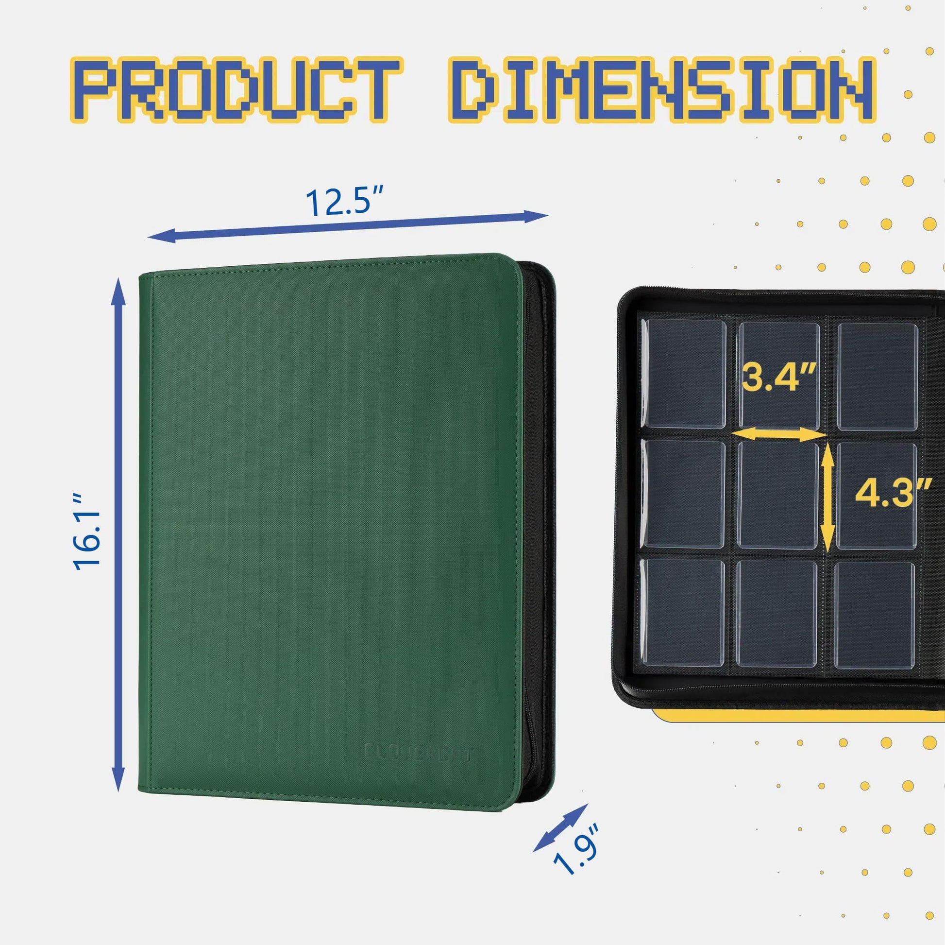 9-Pocket Toploader Binder Clovecat enhanced Card Book Holds 252 Trading Card with 20 Removable Top-loader Sleeves PU Card Holder Folders Card Album for MTG TCG Yugioh Game & Sports Cards(Green)