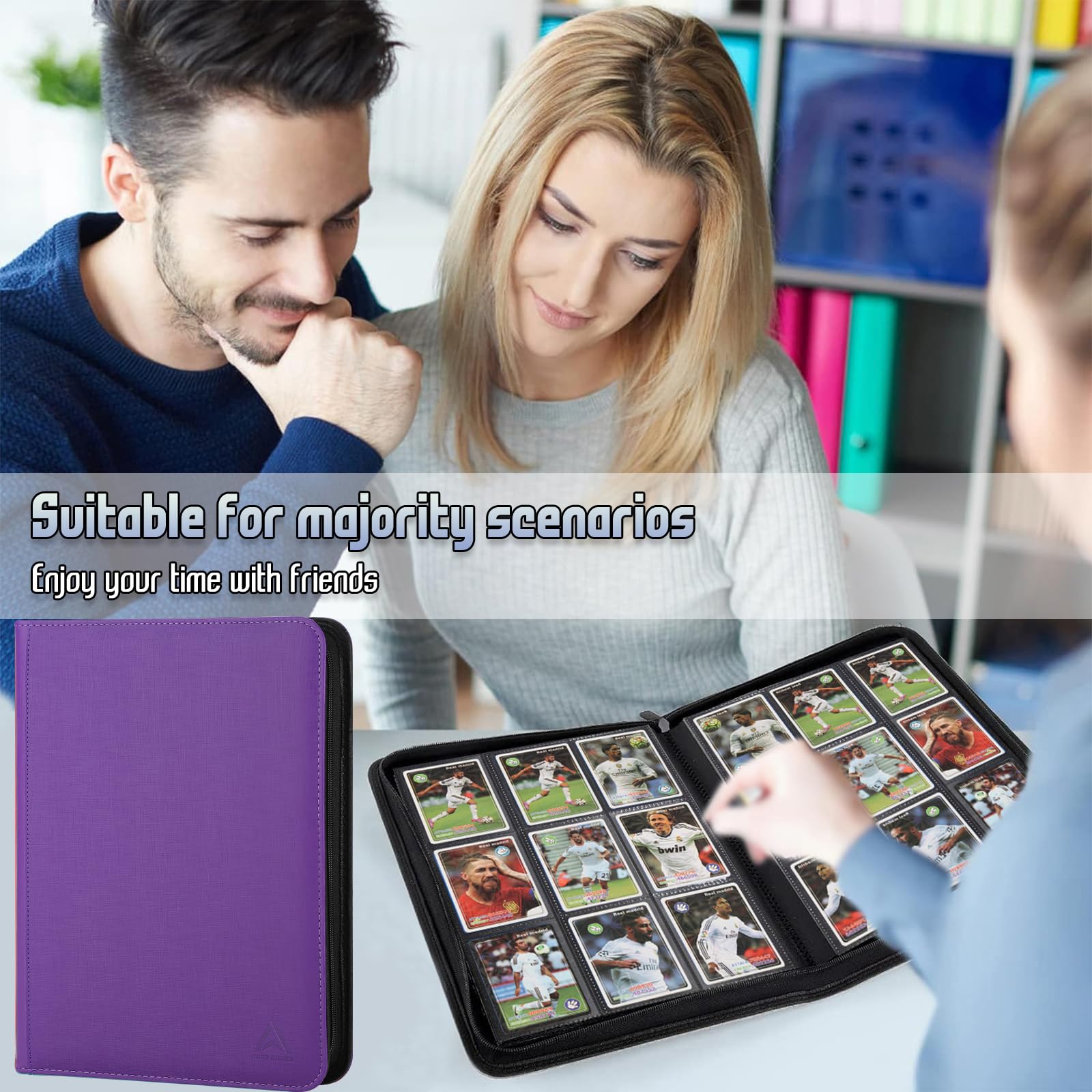 View compare9 Pocket Trading Card Binder 540 Capacity with Zip Closure - enhanced Double Sided PU Leather Card Protector Hold & Organize Cards for TCG MTG Sports Cards (Purple)