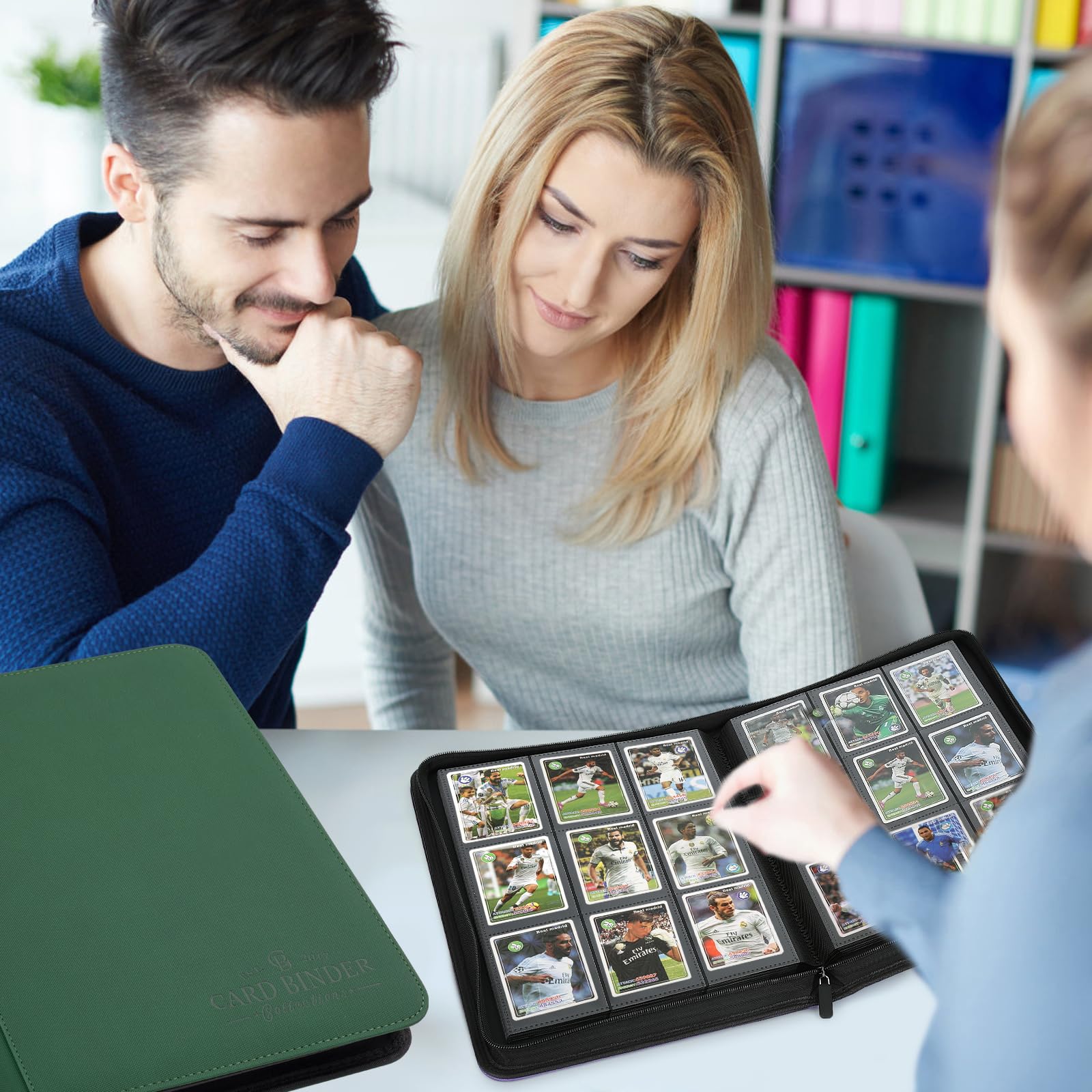 9 Pockets Card Binder enhanced Zip Trading Card Binder 540 Double Sided Pocket PU Collection Binder Collector Album Card Folder for MTG TCG Business Cards.(Blackish Green)