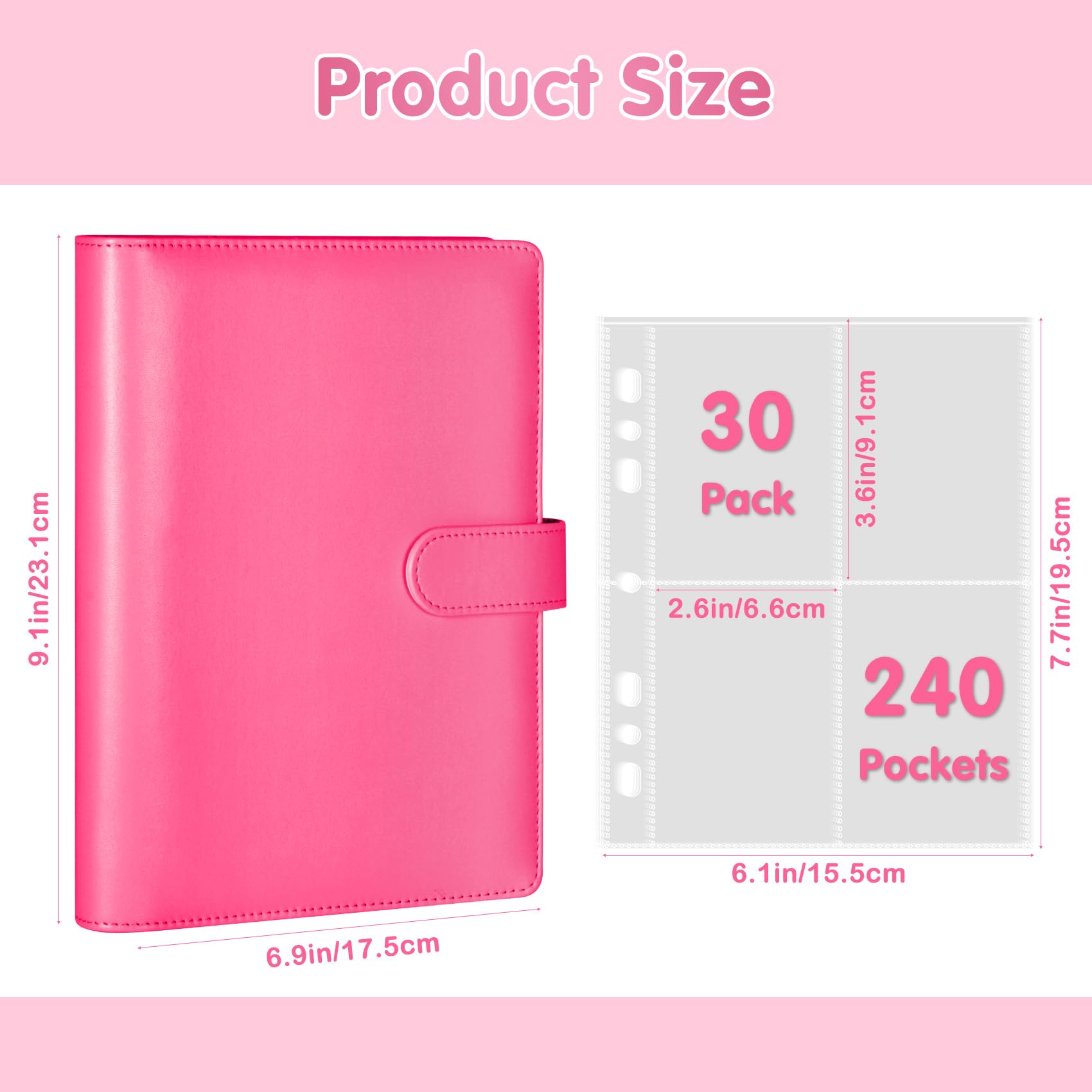 A5 Kpop Photocard Binder PU Leather 6-Ring Album with Magnetic Closure Includes 30 Pack 4-Pocket Pages for 240 Cards Card Holder for Trading and Collectible Cards (Rose)