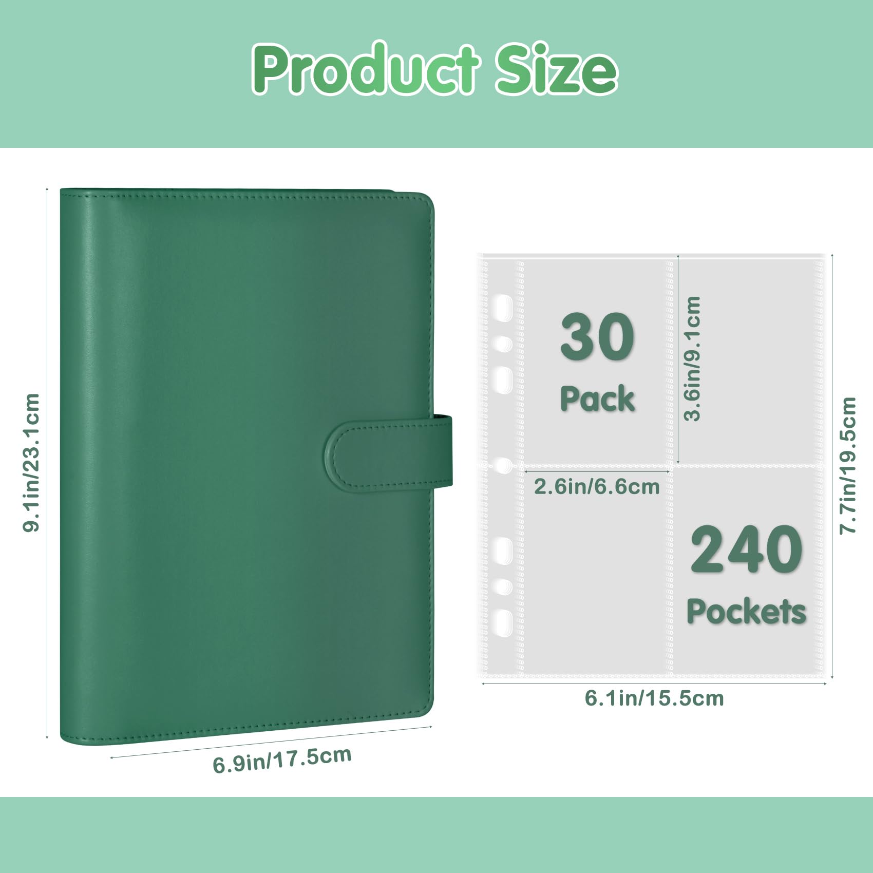 A5 Photocard Holder and Binder PU Leather 6-Ring Album with Magnetic Closure Includes 30 Pack 4-Pocket Pages for 240 Cards Card Holder for Kpop Trading and ID Cards (Forest Green)