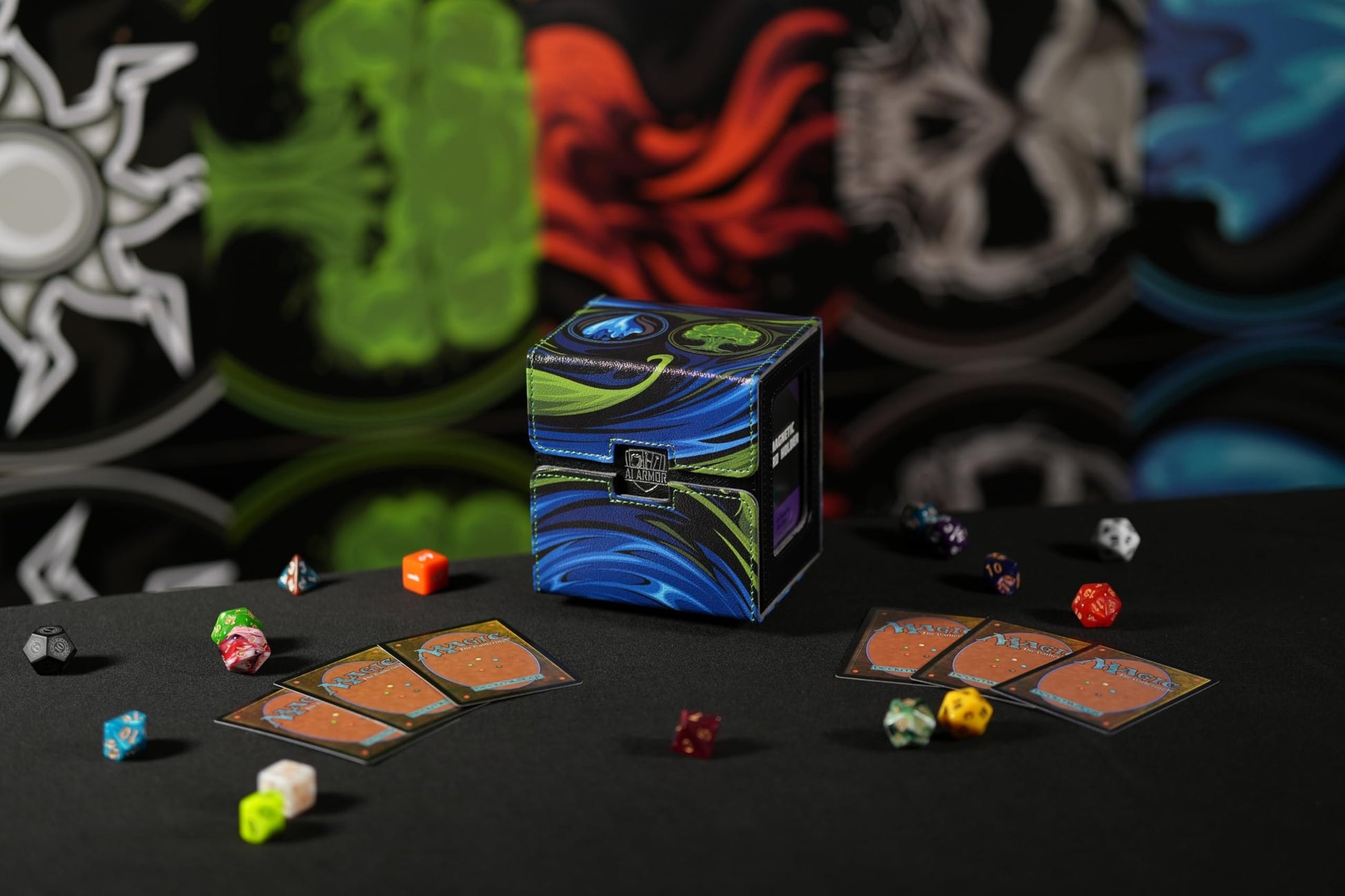 Ai protective covering MTG Commander 100+ Card Custom Art Deck Box With Storage (Blue/Green)