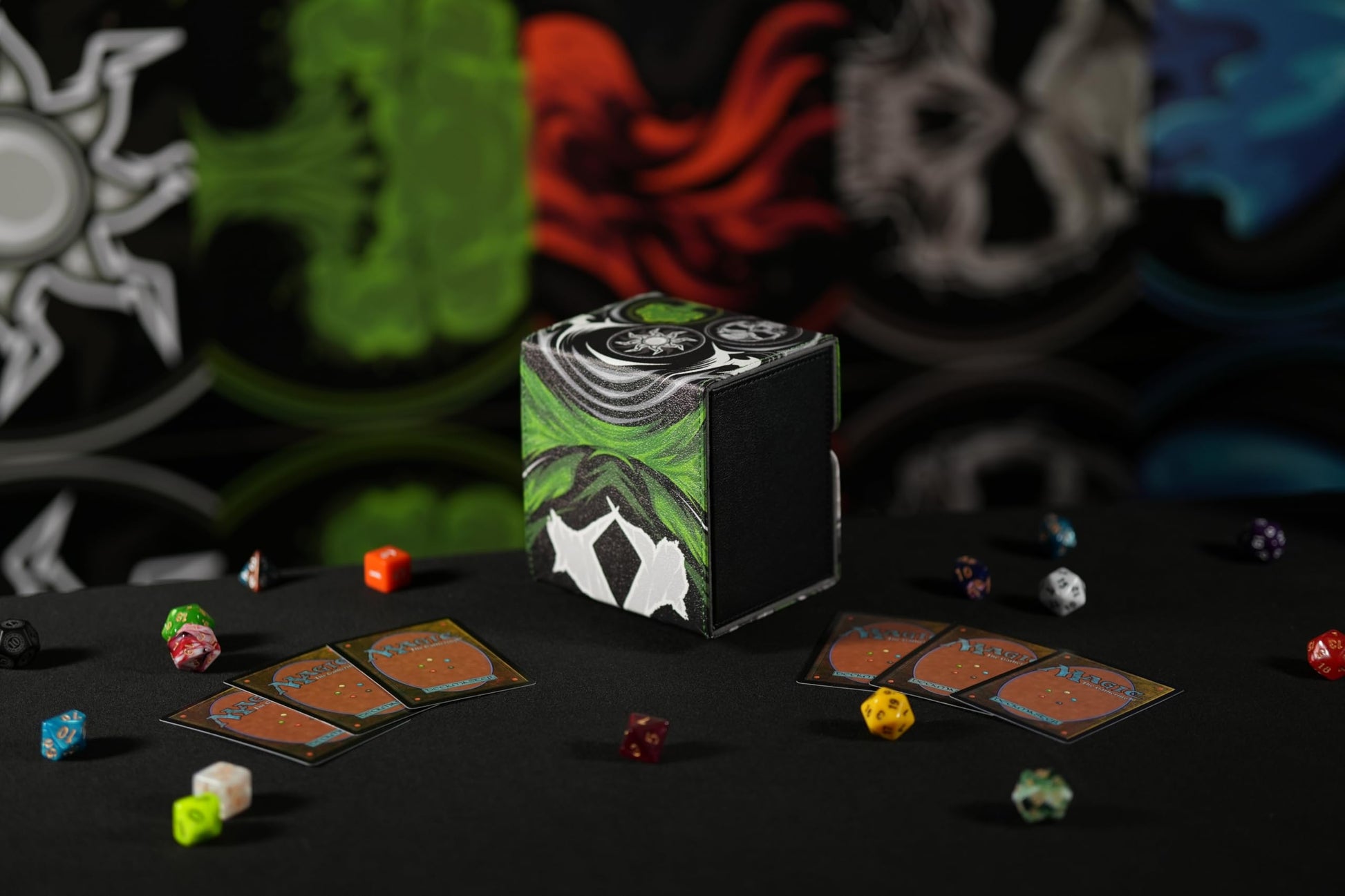 Ai protective covering MTG Commander 100+ Card Custom Art Deck Box With Storage (White/Black/Green)