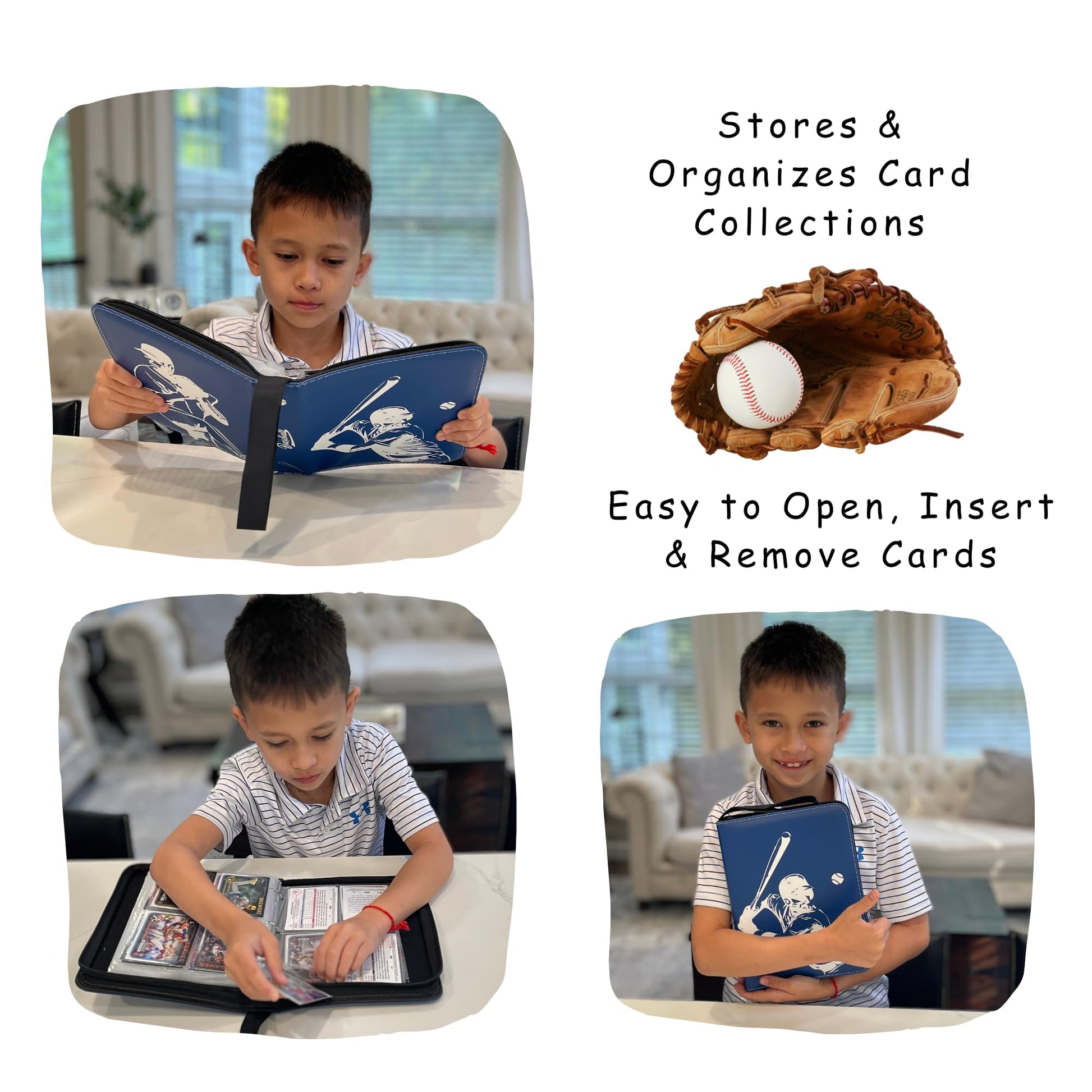 Rucher Baseball Card Binder with 55 Sleeves - Holds 440 Cards Waterproof & SeZipper Closure The Rucher Baseball Card Binder is the perfect gift for baseball card collectors! This enhanced binder for baseball cards features 55 double-sided pages holding up to 450 cards making it the ultimate baseball card case for organizing and protecting your valuable collection. Designed with specialized pockets that fit Topps cards and other standard-sized sports cards this baseball card holder ensures your collection stays in pristine condition. Ideal gifts for baseball fans.
