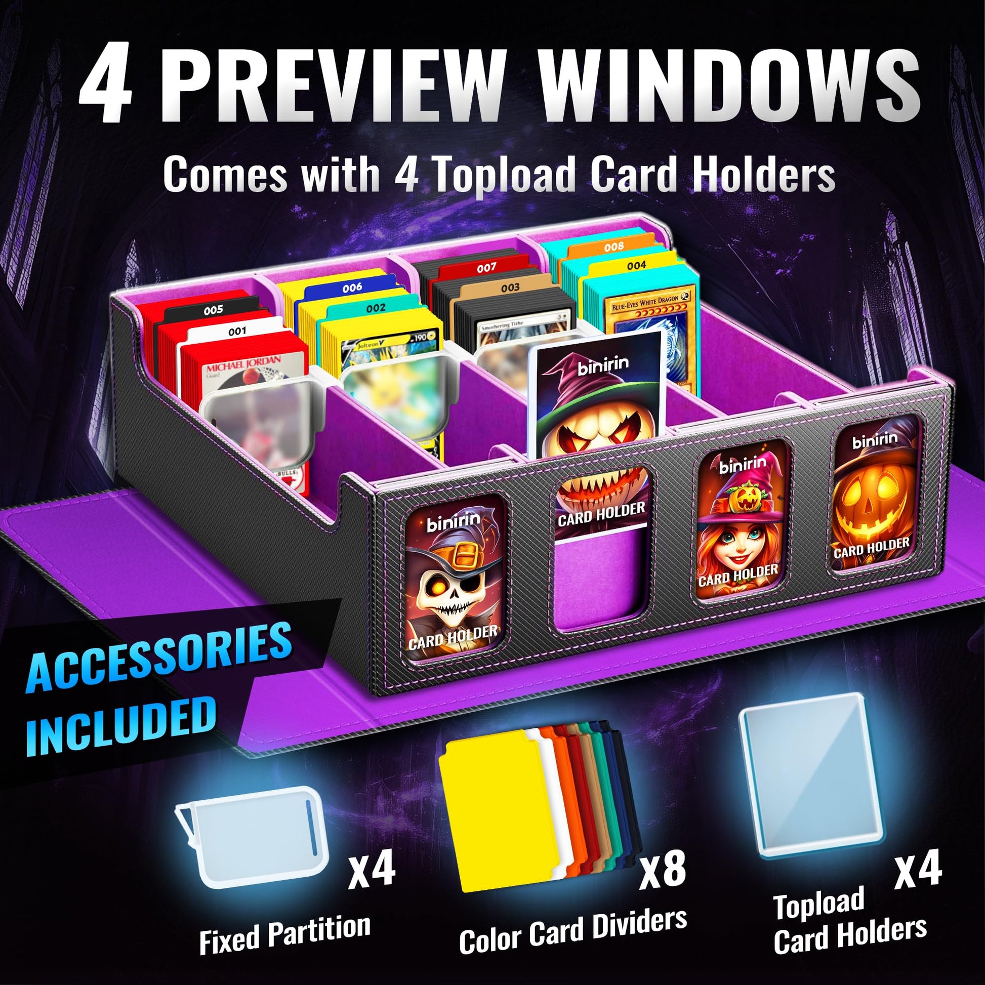 Binirin Tcg Storage Box For Commander Display, 3000+ Mtg Deck Case With 4 Toploaders & Supporters, Pu Leather Organizer Compatib