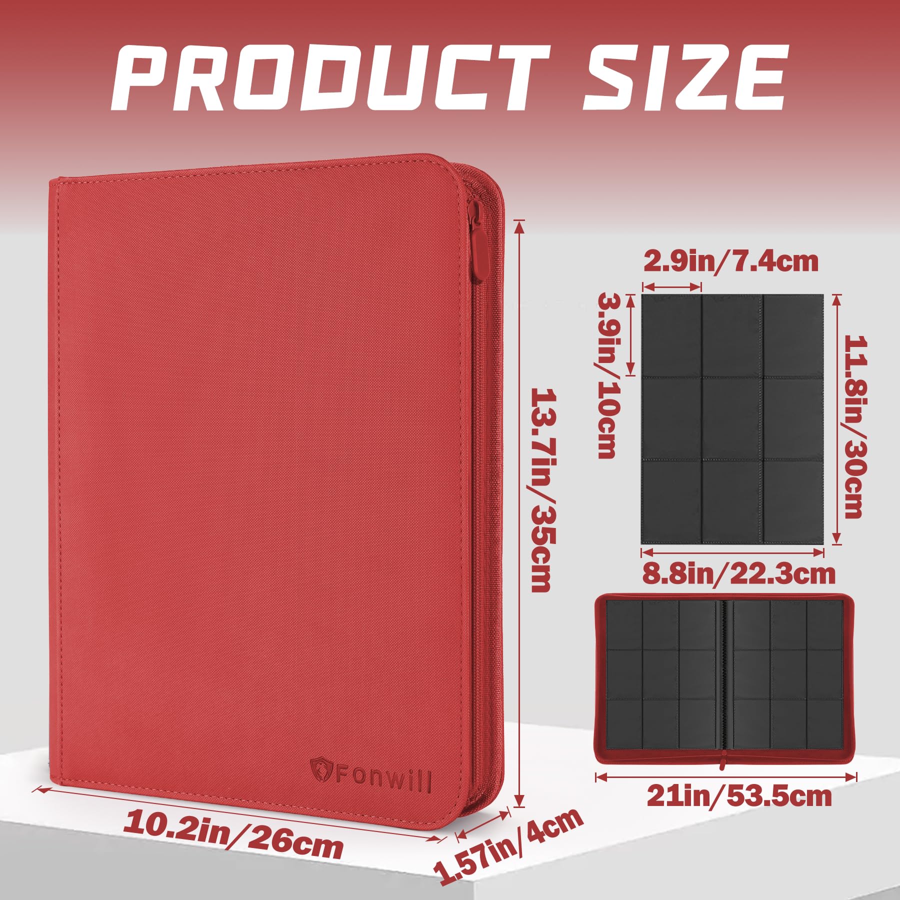 Card Binder 360 Pockets Trading Card Holder Book enhanced PU Cover Zip Folder Binder Side Loading Carrying Case Binder Album for TCG MTG Sports Cards Game Cards (Red)