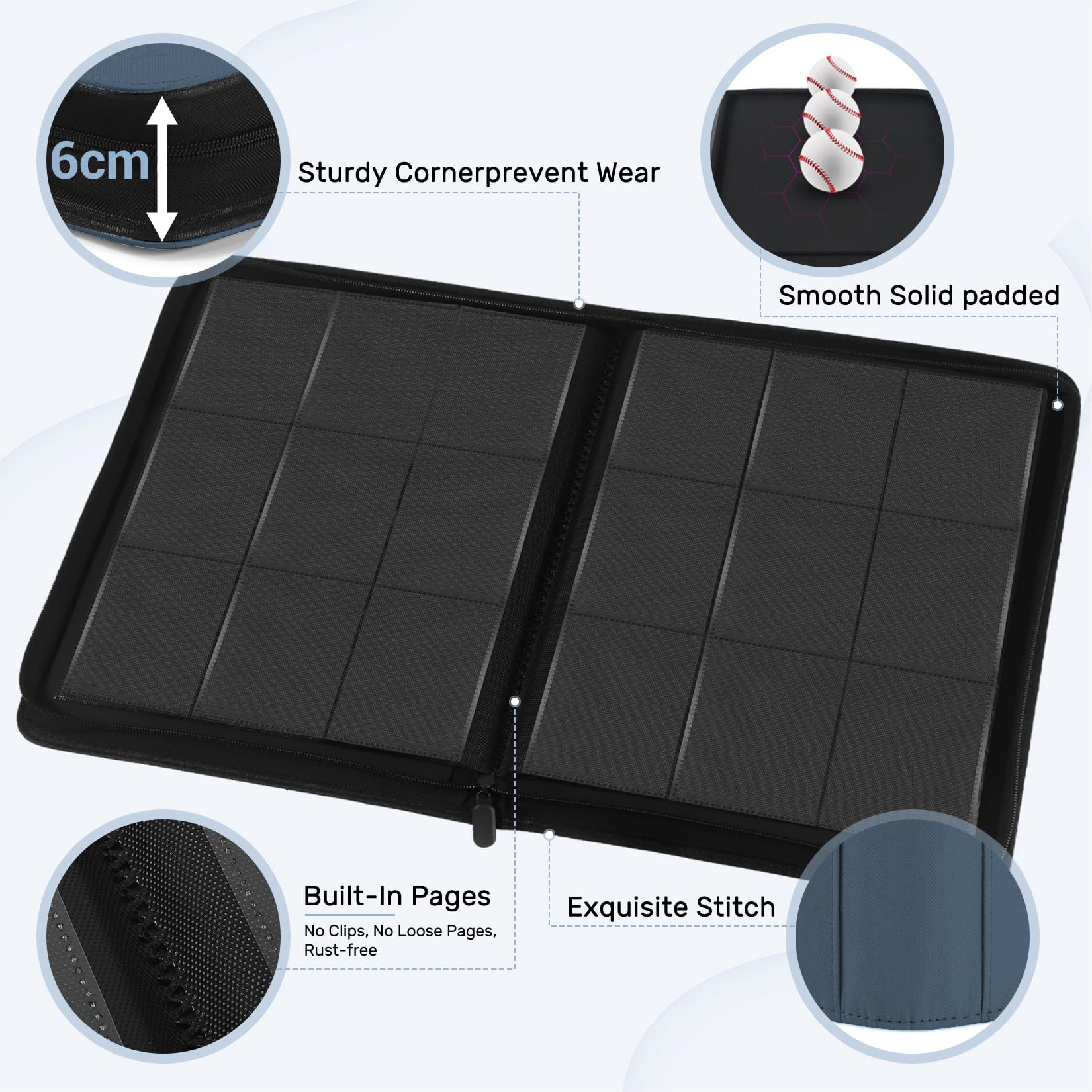 Card Binder 9 Pocket enhanced Zip Trading Card Binder 540 Double Sided Pocket PU Collection Binder Side-Loading Collector Album Card Folder for MTG TCG Sports Cards Navy Blue