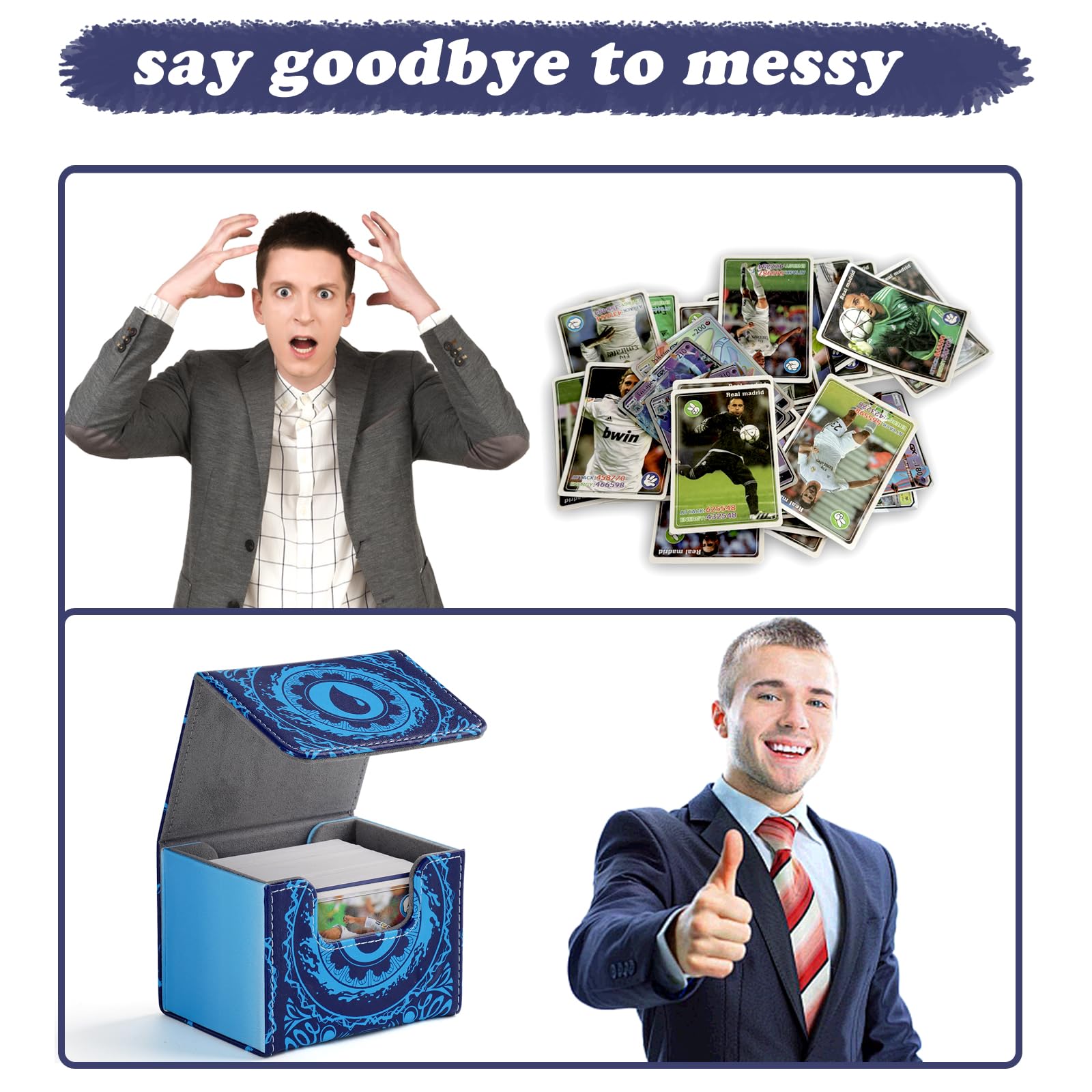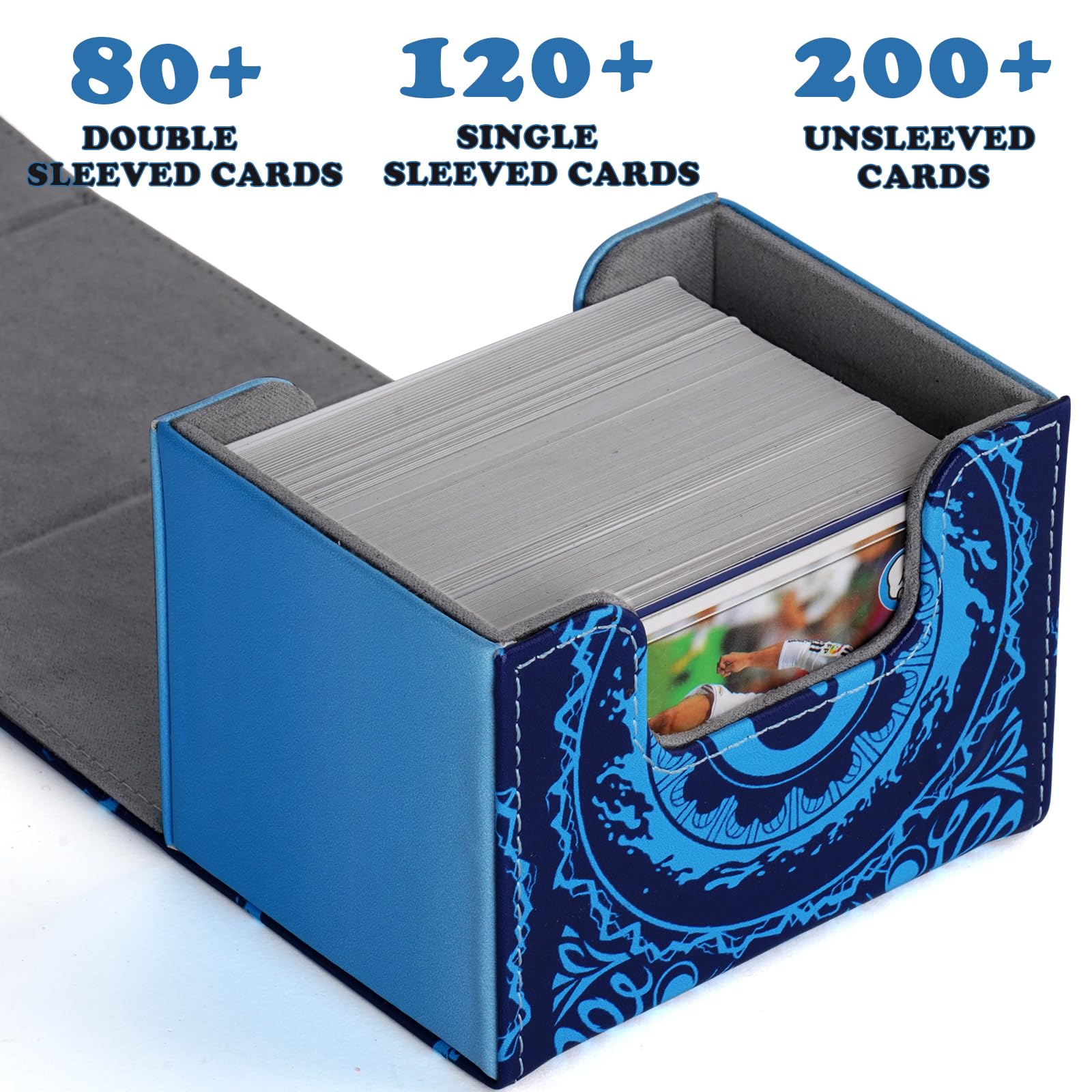 View compareDeck Box for MTG Cards Trading Commander Deck Case Holds 120+ Sleeved Cards PU Leather Magnetic Collectible Card Storage Box Fits for TCG Magic Card (Blue)