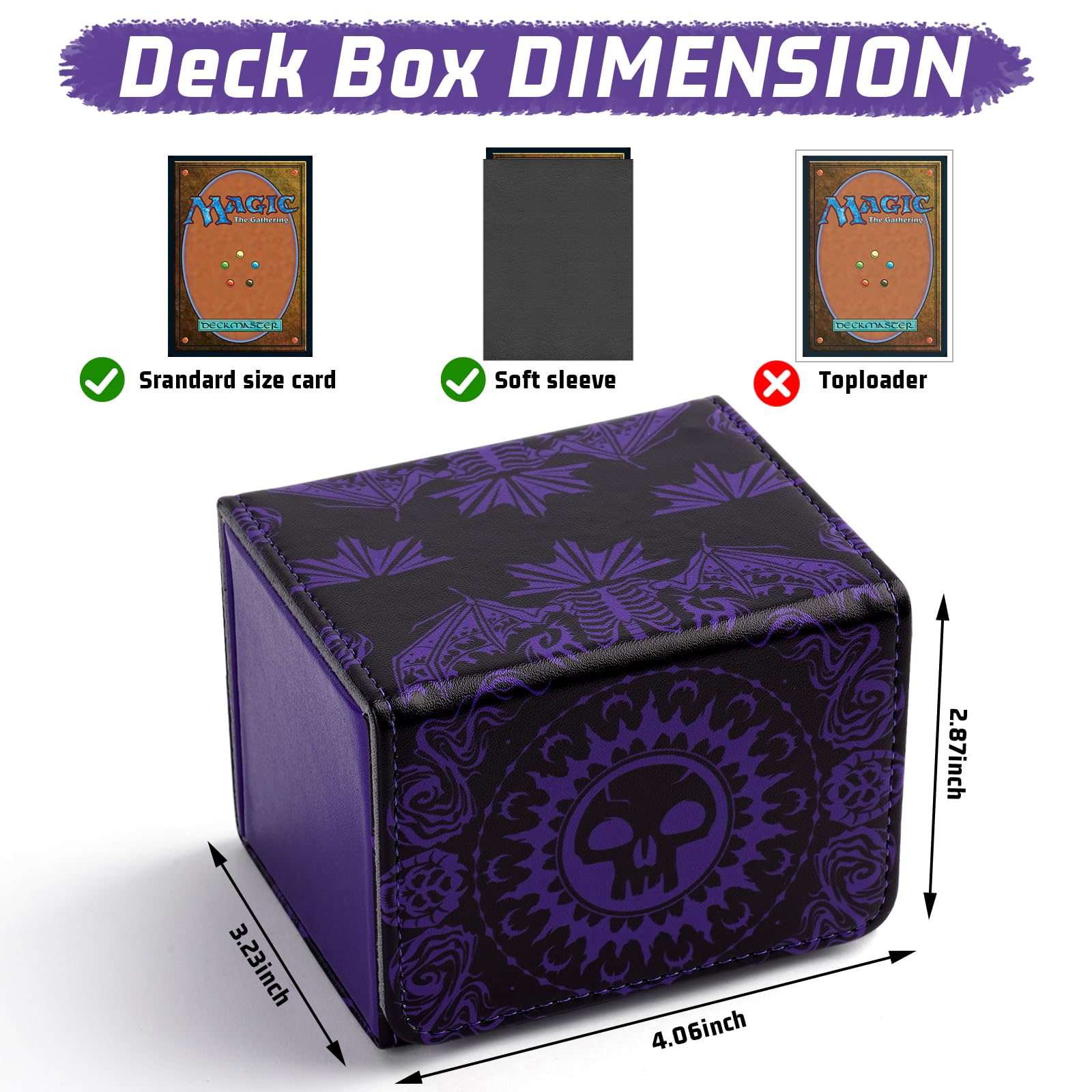 Deck Box for MTG Cards Trading Commander Deck Case Holds 120+ Sleeved Cards PU Leather Magnetic Collectible Card Storage Box Fits for TCG Magic Card (Purple)