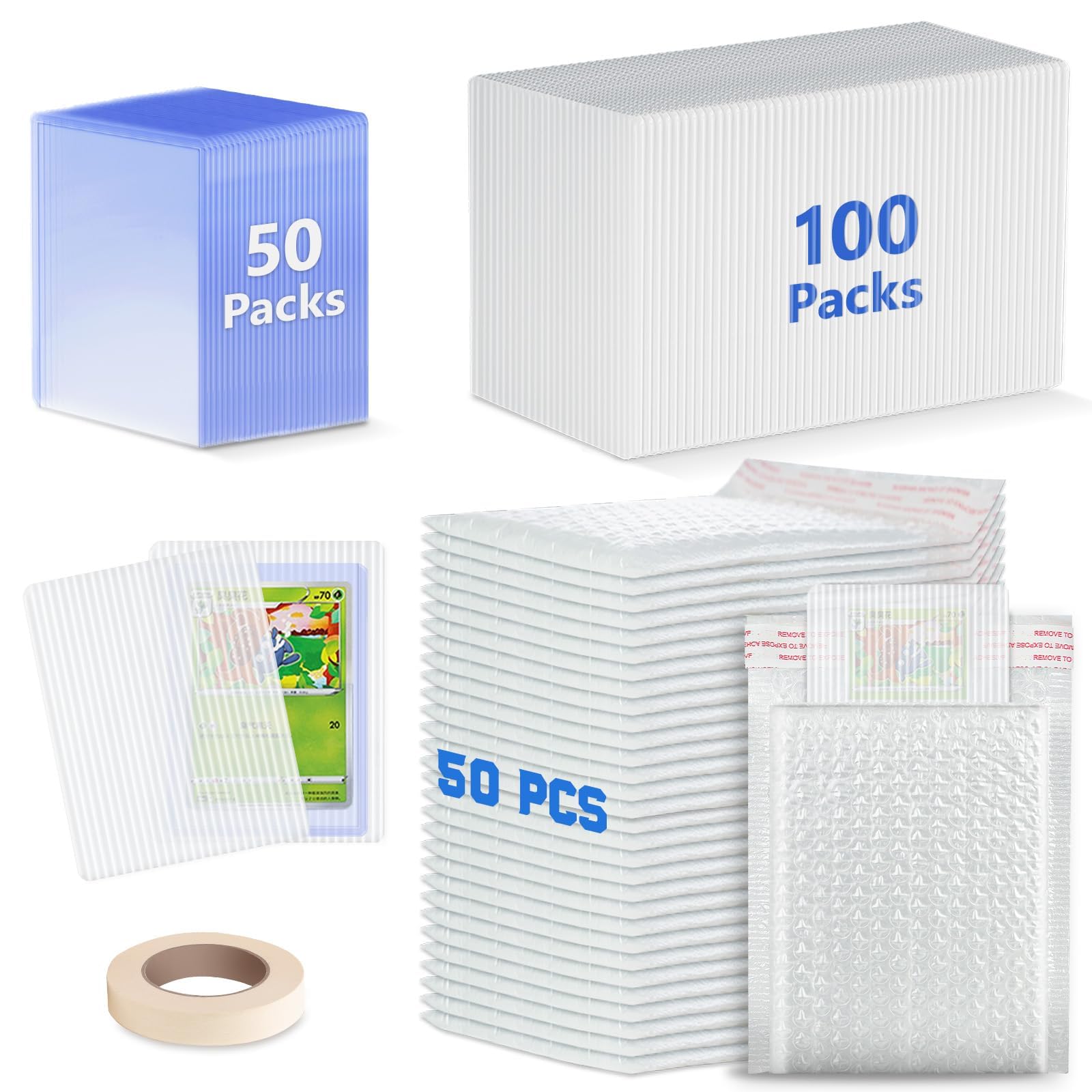 Dedc 200 Packs Trading Card Shipping Protectors 100 Packs Card Protector Shipping 50 Pcs Top Loaders 50 Pcs Black Bubble Mailers