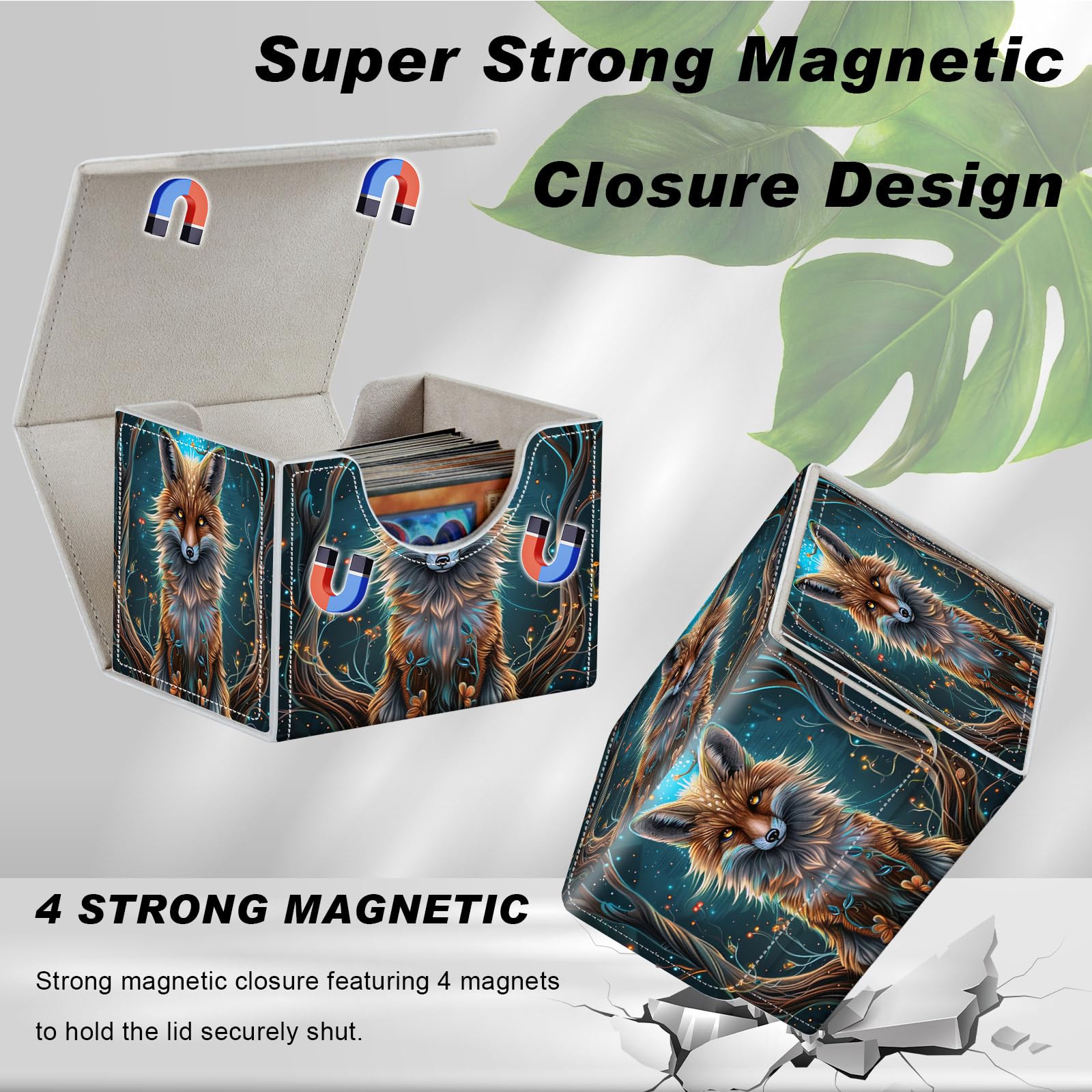 View compareDEGDFSGR for TCG MTG Card Game Storage Box Organizer Trading Card Case Commander Deck Box Magnetic Closure Creative Pattern Up to 200 Cards Blue Glow Fox