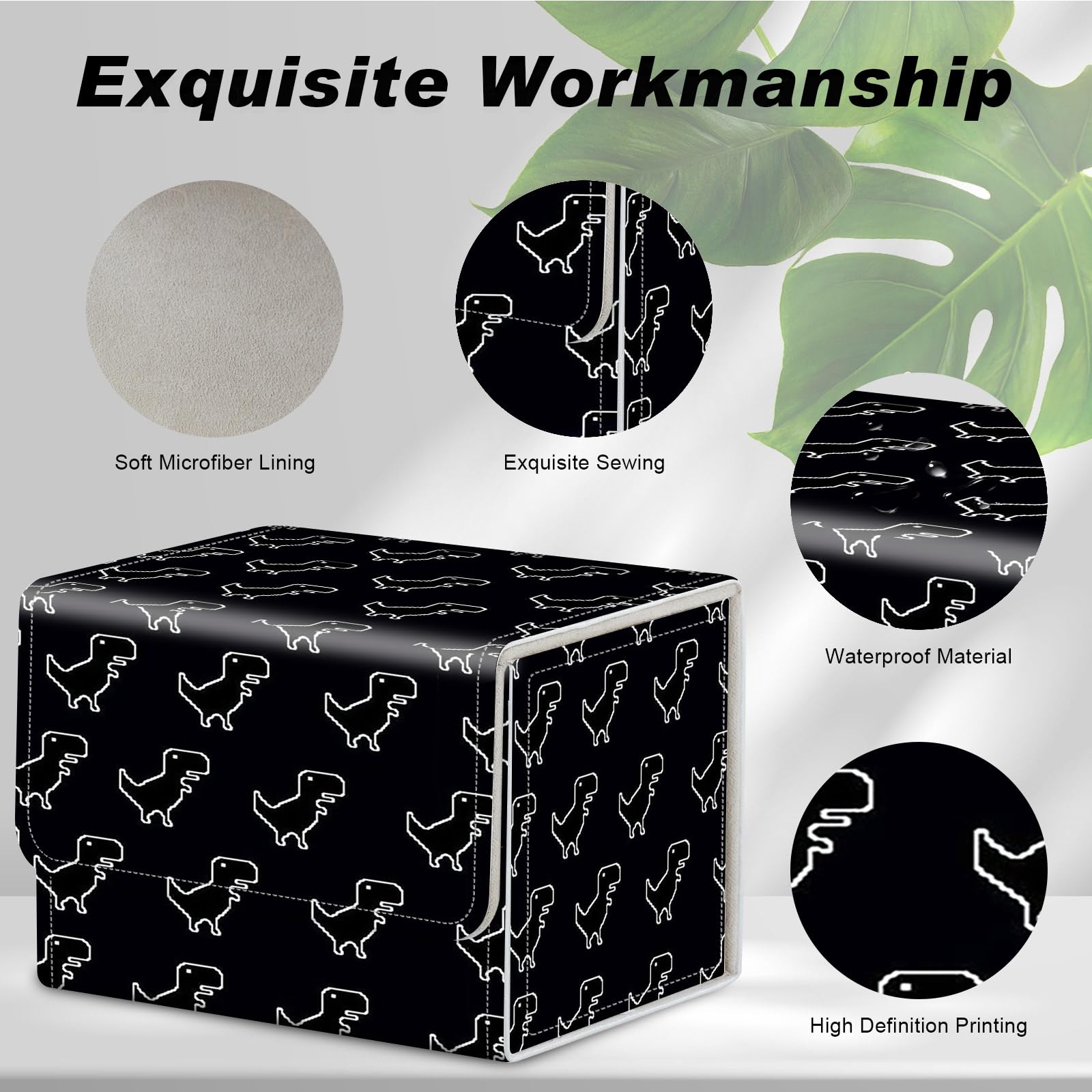View compareDEGDFSGR for TCG MTG Card Game Storage Box Organizer Trading Card Case Commander Deck Box Magnetic Closure Creative Pattern Up to 200 Cards Little Dinosaur Black