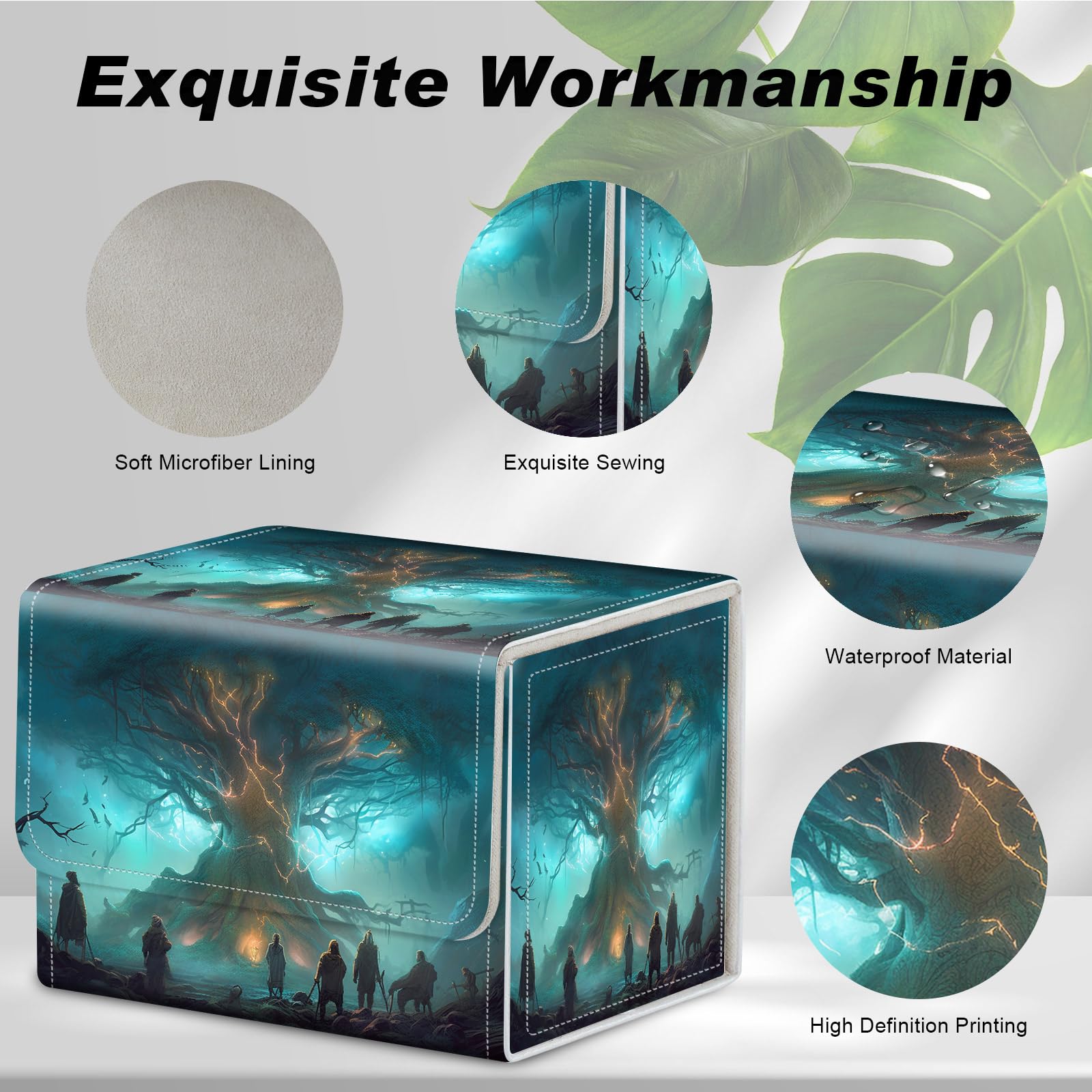 DEGDFSGR for TCG MTG Card Game Storage Box Organizer Trading Card Case Commander Deck Box Magnetic Closure Creative Pattern Up to 200 Cards Several People Tree
