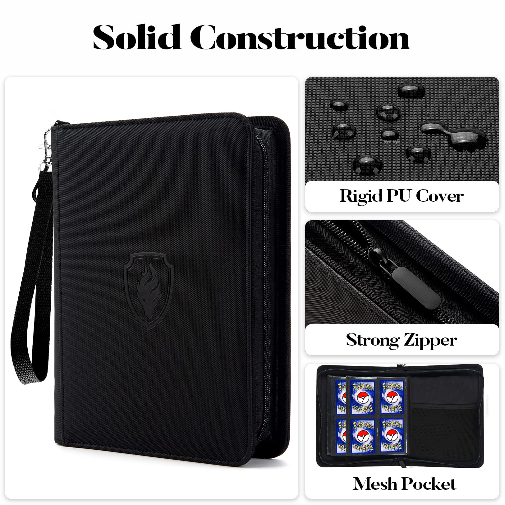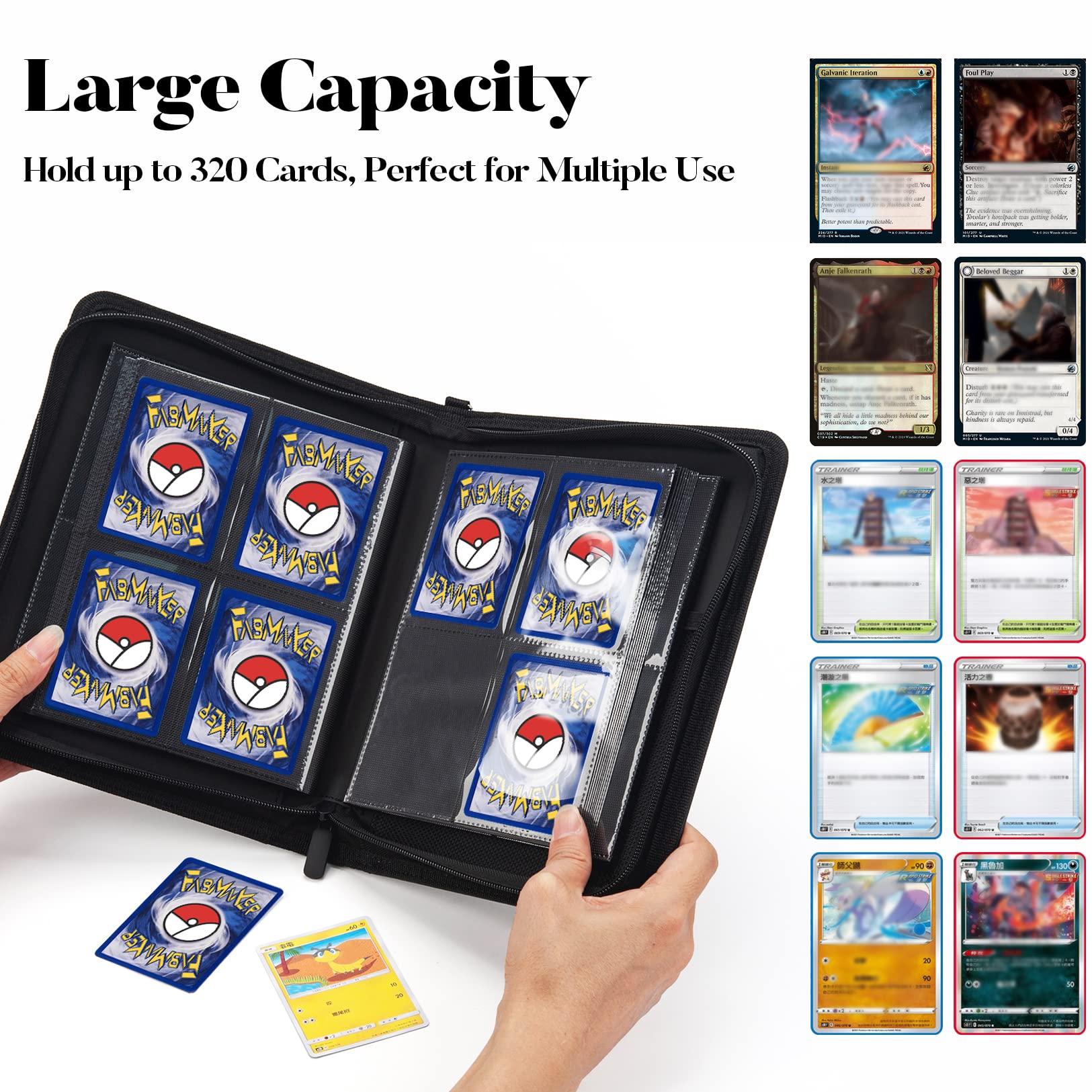 Fabmaker enhanced 4 Pocket Zip Card Binder Trading Card Binder for 320 Cards Portable PU Card Collection Binder Collector Card Album Folder for MTG TCG Sports Cards Game Cards (Black)