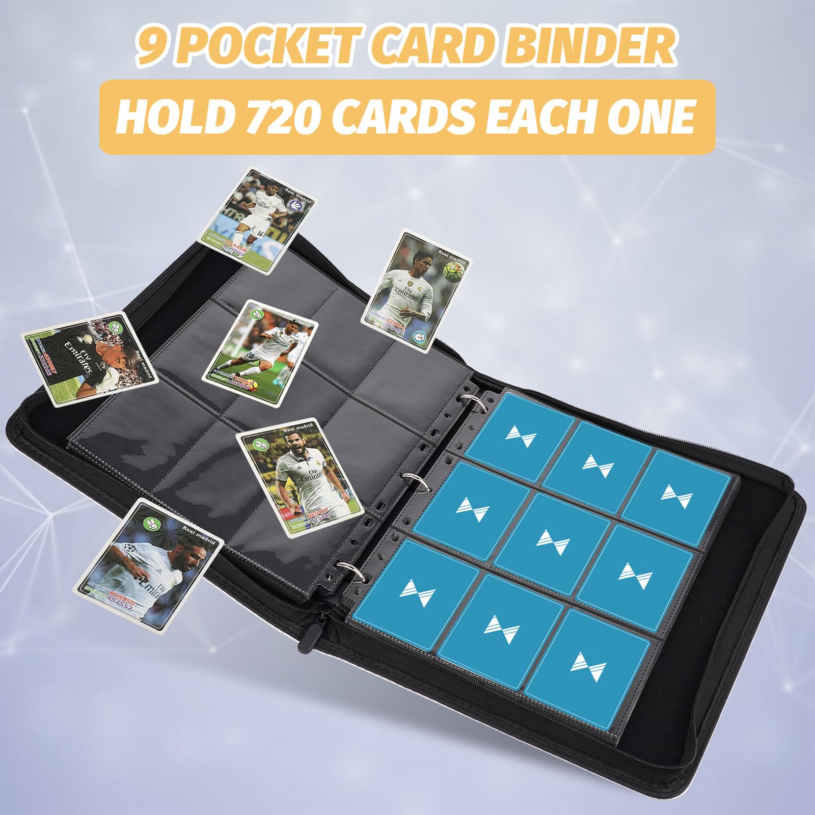 GERMUN 9-Pocket Binder for Cards fit for 720 cards: A must have for trading card collector's beautiful and compact card binder for kids to carry around wherever they go get this zipper binder by GERMUN. Features Youll Love: 1. GERMUN 9-Pocket cards binder for trading cards with PVC-Free EVA foam and PU leather2. cards holder for trading card with sleeves with plenty of room to hold 720 trading cards3.binder for trading cards with sleeves have all cards in the binder and not all over the place 4.card binder for trading cards with 40 sleeves compatible with universal standard size trading cards game cards sports cards and more. Perfect Match Standard Binder :Our card binder for trading cards with sleeves is great for trading cards storage keeps your trading cards safe protected and organized! perfect for most. Whats In The BoxA carrying binder with total 720 pockets card sleeves ( 40 pages double-sided use) trading cards are NOT INCLUDED. After Sales Service:Please don't hesitate to reach out to us if you have any issues with your purchase - we're here to help!Our company will reply within 12 hours after receiving the email and resolve it until you are satisfied.