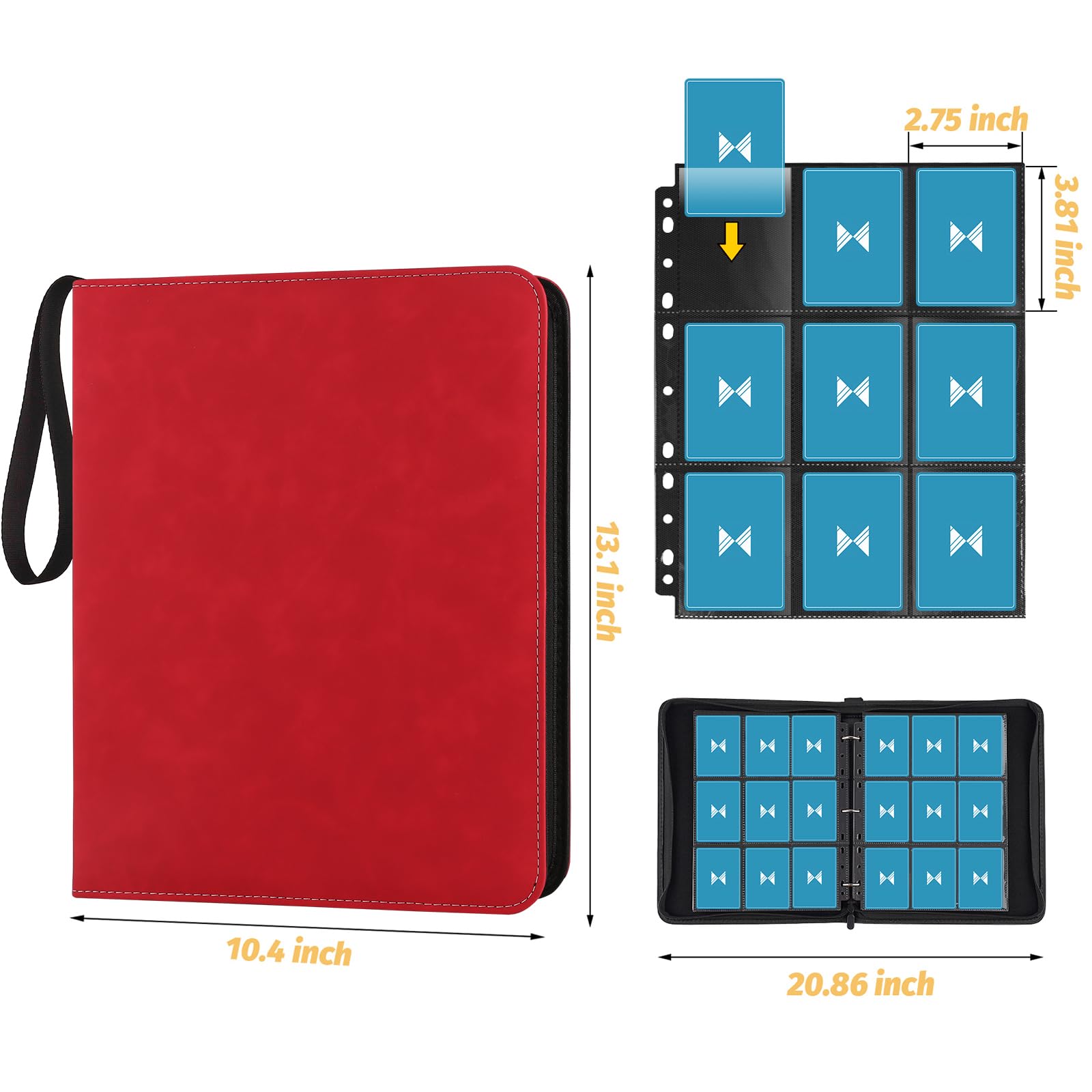GERMUN 9-Pocket Binder for Cards fit for 720 cards: A must have for trading card collector's beautiful and compact card binder for kids to carry around wherever they go get this zipper binder by GERMUN. Features Youll Love: 1. GERMUN 9-Pocket cards binder for trading cards with PVC-Free EVA foam and PU leather2. cards holder for trading card with sleeves with plenty of room to hold 720 trading cards3.binder for trading cards with sleeves have all cards in the binder and not all over the place 4.card binder for trading cards with 40 sleeves compatible with universal standard size trading cards game cards sports cards and more. Perfect Match Standard Binder :Our card binder for trading cards with sleeves is great for trading cards storage keeps your trading cards safe protected and organized! perfect for most. Whats In The BoxA carrying binder with total 720 pockets card sleeves ( 40 pages double-sided use) trading cards are NOT INCLUDED. After Sales Service:Please don't hesitate to reach out to us if you have any issues with your purchase - we're here to help!Our company will reply within 12 hours after receiving the email and resolve it until you are satisfied.