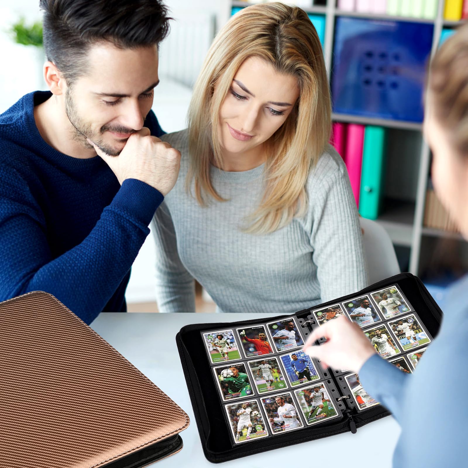 GERMUN 9 Pocket Card Binder enhanced Zip Trading Card Binder 720 Double Sided Pocket PU Card Collection Binder Collector Card Album Card Folder for MTG TCG Sports Cards Game Cards (Brown)