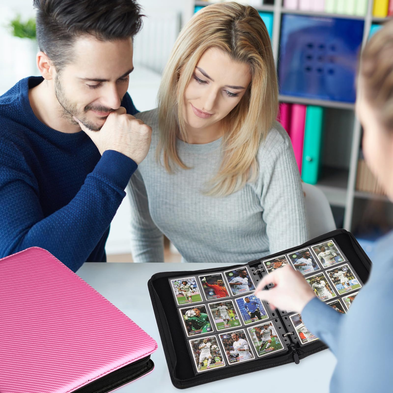 GERMUN 9 Pocket Card Binder enhanced Zip Trading Card Binder 720 Double Sided Pocket PU Card Collection Binder Collector Card Album Card Folder for MTG TCG Sports Cards Game Cards (Pink)
