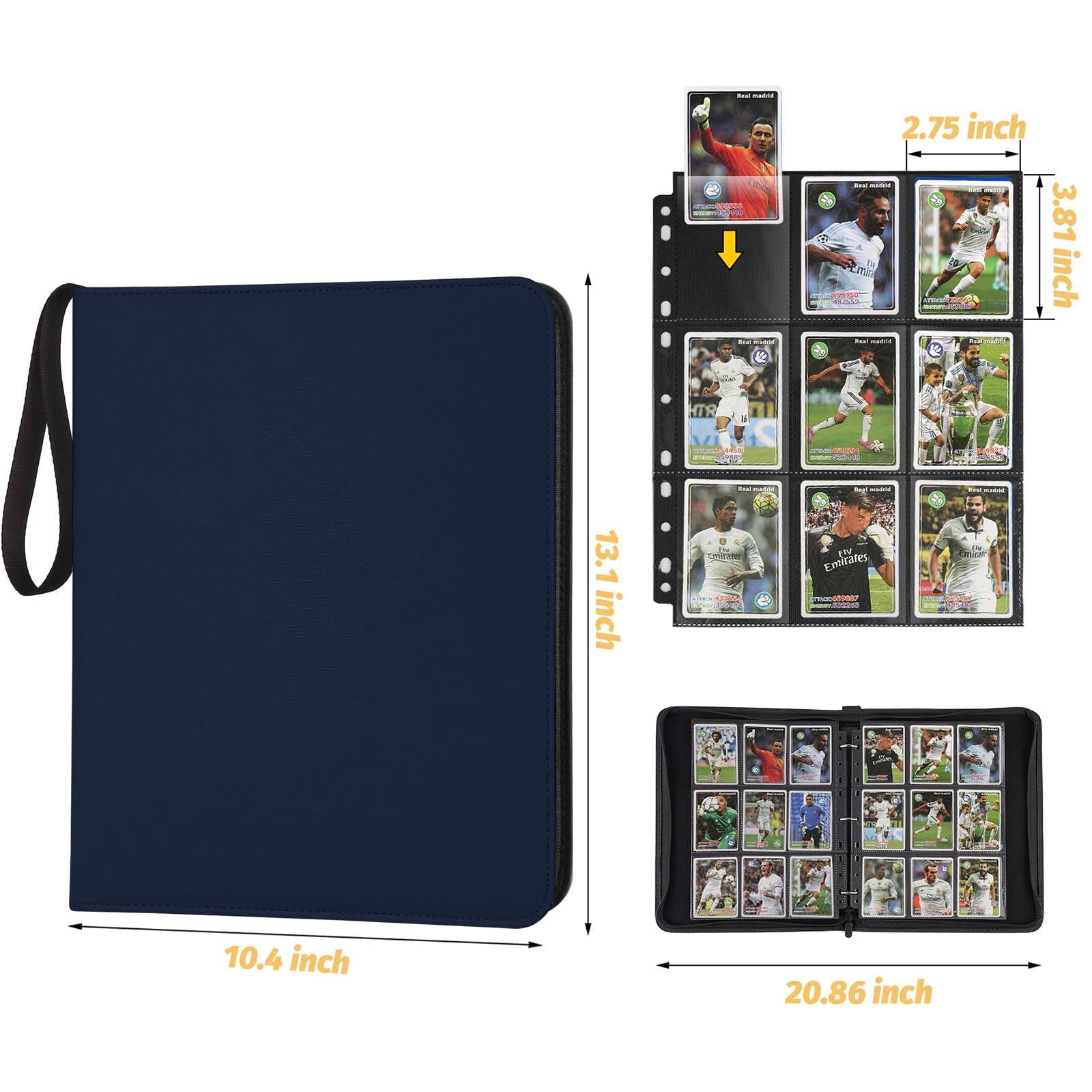 GERMUN 9-Pocket Binder for Cards fit for 720 cards: A must have for trading card collector's beautiful and compact card binder for kids to carry around wherever they go get this zipper binder by GERMUN. Features Youll Love: 1. GERMUN 9-Pocket cards binder for trading cards with PVC-Free EVA foam and PU leather2. cards holder for trading card with sleeves with plenty of room to hold 720 trading cards3.binder for trading cards with sleeves have all cards in the binder and not all over the place 4.card binder for trading cards with 40 sleeves compatible with universal standard size trading cards game cards sports cards and more. Perfect Match Standard Binder :Our card binder for trading cards with sleeves is great for trading cards storage keeps your trading cards safe protected and organized! perfect for most. Whats In The BoxA carrying binder with total 720 pockets card sleeves ( 40 pages double-sided use) trading cards are NOT INCLUDED. After Sales Service:Please don't hesitate to reach out to us if you have any issues with your purchase - we're here to help!Our company will reply within 12 hours after receiving the email and resolve it until you are satisfied.