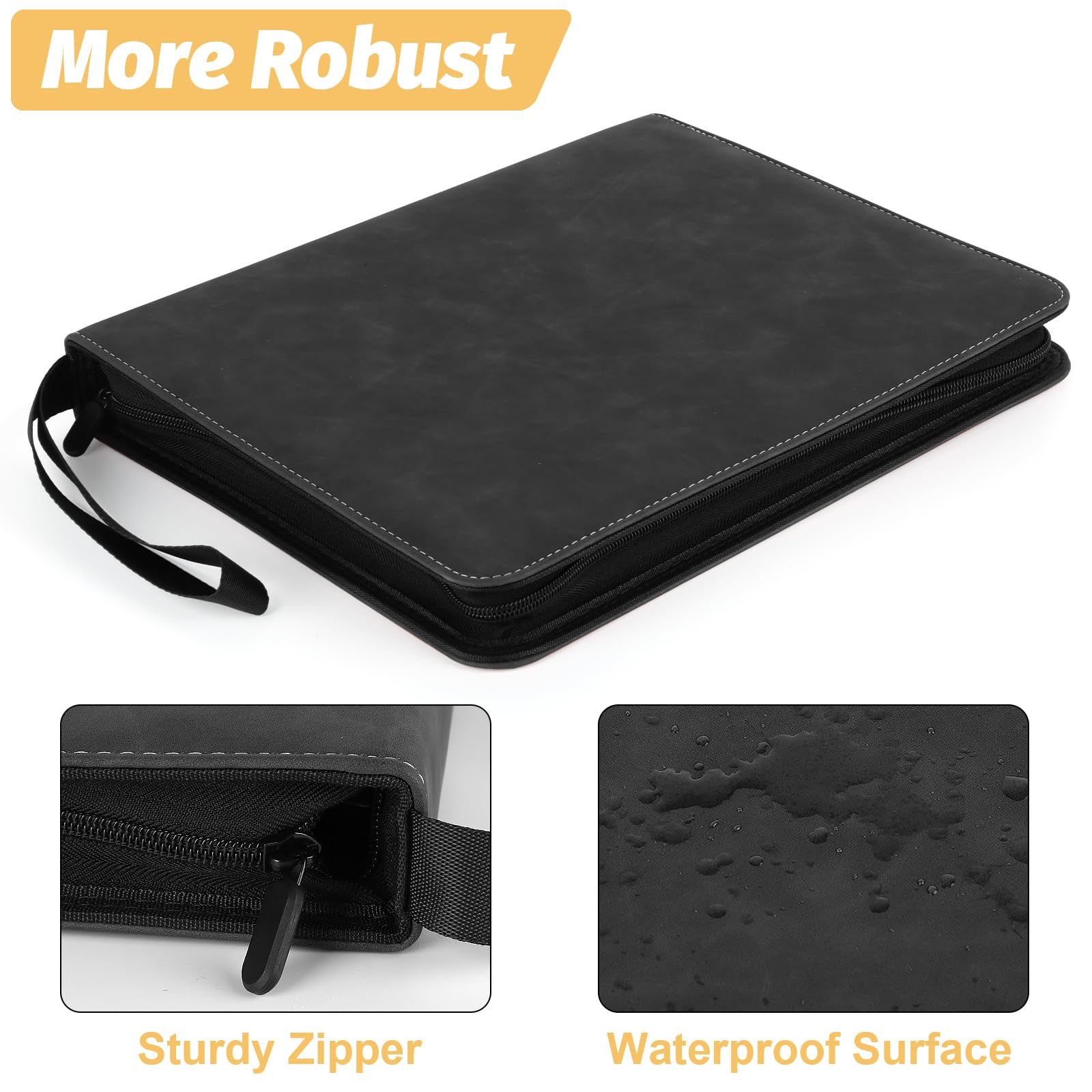 GERMUN 9-Pocket Binder for Cards fit for 900 cards: A must have for trading card collector's beautiful and compact card binder for kids to carry around wherever they go get this zipper binder by GERMUN. Features Youll Love: 1. GERMUN 4-Pocket cards binder for trading cards with PVC-Free EVA foam and PU leather2. cards holder for trading card with sleeves with plenty of room to hold 900 trading cards3.binder for trading cards with sleeves have all cards in the binder and not all over the place 4.card binder for trading cards with 50 sleeves compatible with universal standard size trading cards game cards sports cards and more. Perfect Match Standard Binder :Our card binder for trading cards with sleeves is great for trading cards storage keeps your trading cards safe protected and organized! perfect for most. Whats In The BoxA carrying binder with total 900 pockets card sleeves ( 50 pages double-sided use) trading cards are NOT INCLUDED. After Sales Service:Please don't hesitate to reach out to us if you have any issues with your purchase - we're here to help!Our company will reply within 12 hours after receiving the email and resolve it until you are satisfied.