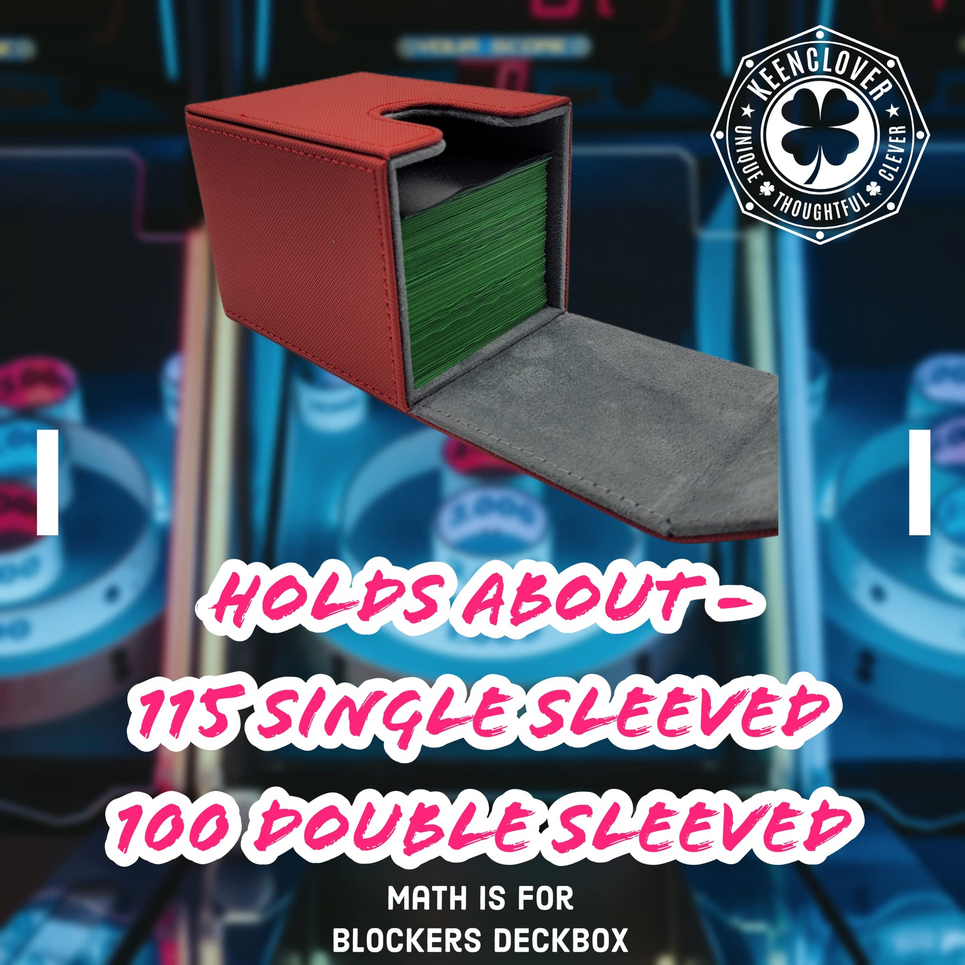 KeenClover has designed deck boxes to set you apart from others in your playgroup. *Multi Use - Compatible with Magic: The Gathering MTG, Pokemon, YuGiOh! and many more. *Built to last - Water resistant PU leather material on the outside and high protection soft microfiber lining inside. *4x3x3 Inches - Holds about 115 single sleeved or 100 double sleeved cards. Ideal for those commander decks! *Be different - Each box has a unique logo or saying to stand out in your playgroup. *Secure design - Self securing lid with four magnets keep the box closed during transportation. No more cards falling everywhere..